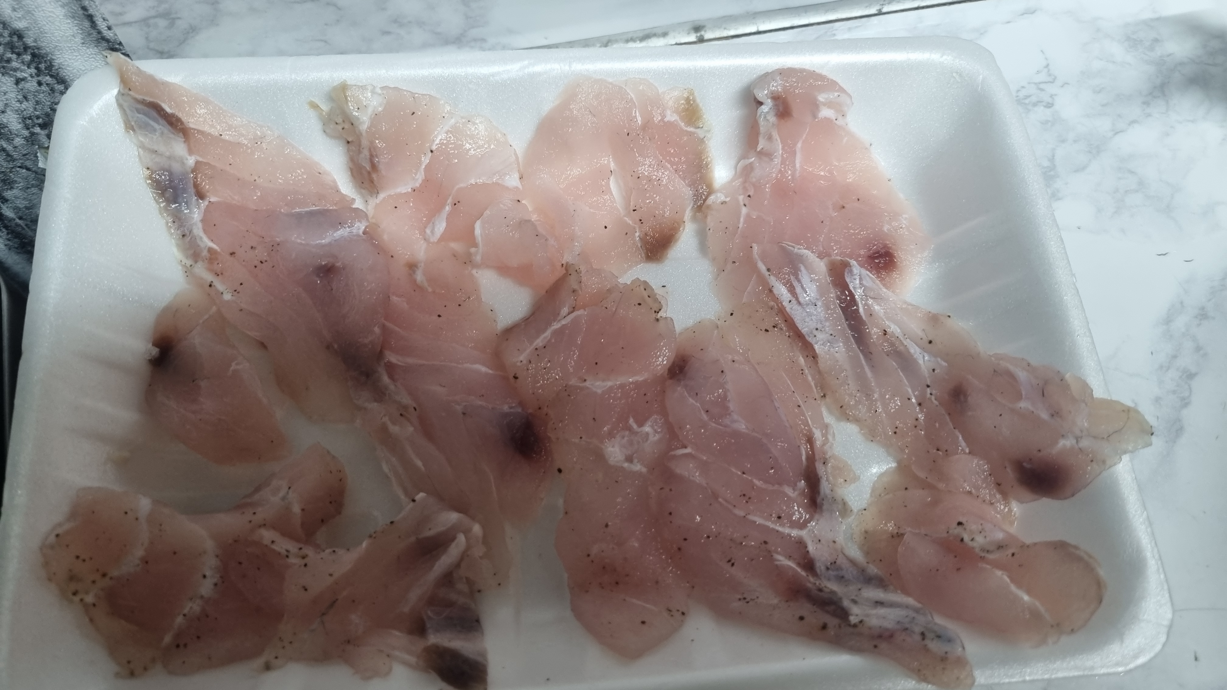 민어가 상당히 얇게 썰어져 있기 때문에 프라이팬에 오랫동안 부칠 필요 없이 짧은 시간만 부쳐도 가능합니다. 대략적으로 1~2분 정도하고 뒤집어 주고 다시 동일한 시간 후 뒤집으면 됩니다.
