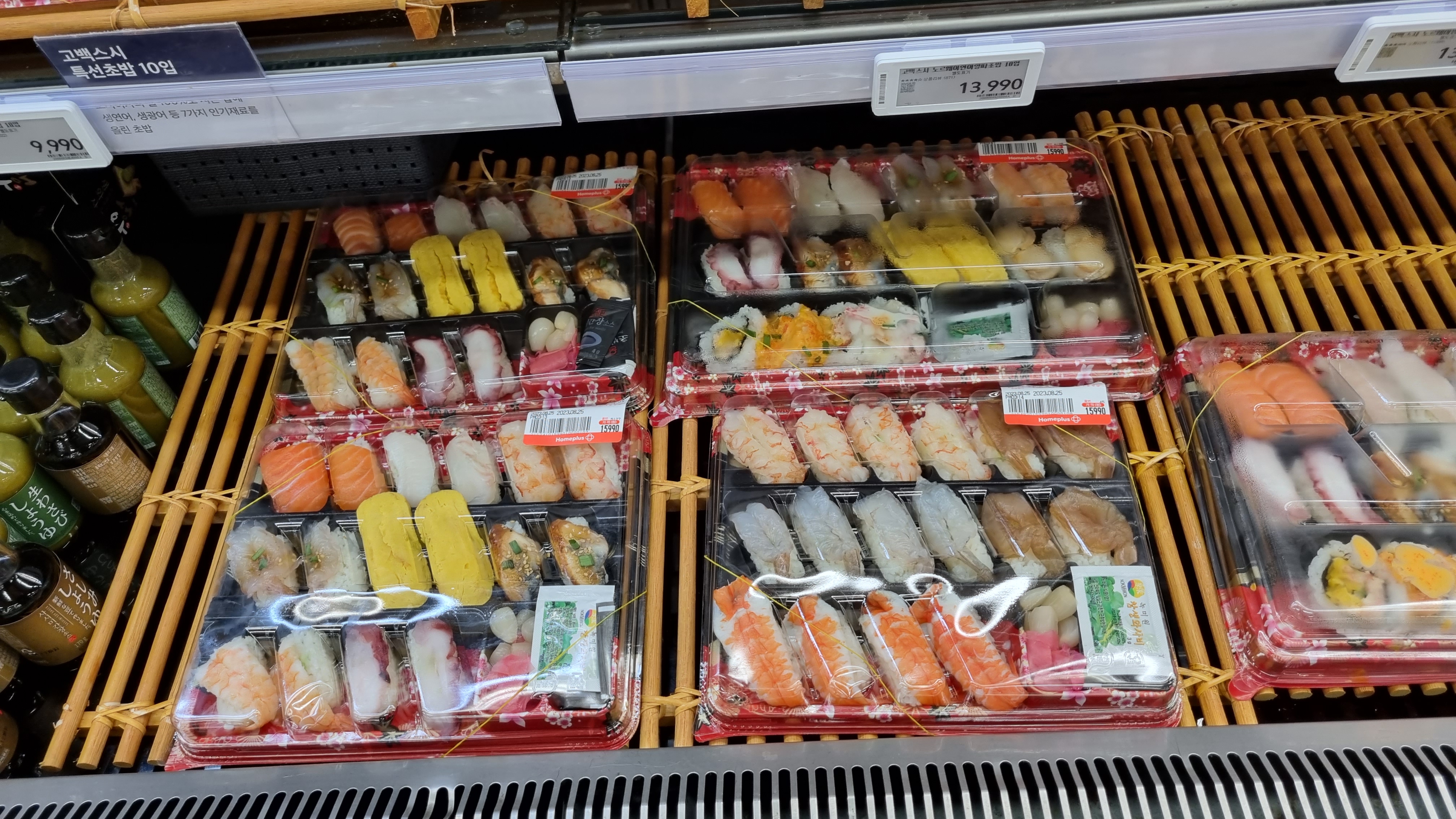 치킨 코너 바로 옆에 초밥코너가 있었는데 이것도 가격이 저렴하고 종류가 많고 구성이 다양하게 되어 먹어볼 만한 것으로 오늘은 아니지만 이전에 먹어본 적이 있고 가성비가 정말 좋습니다.