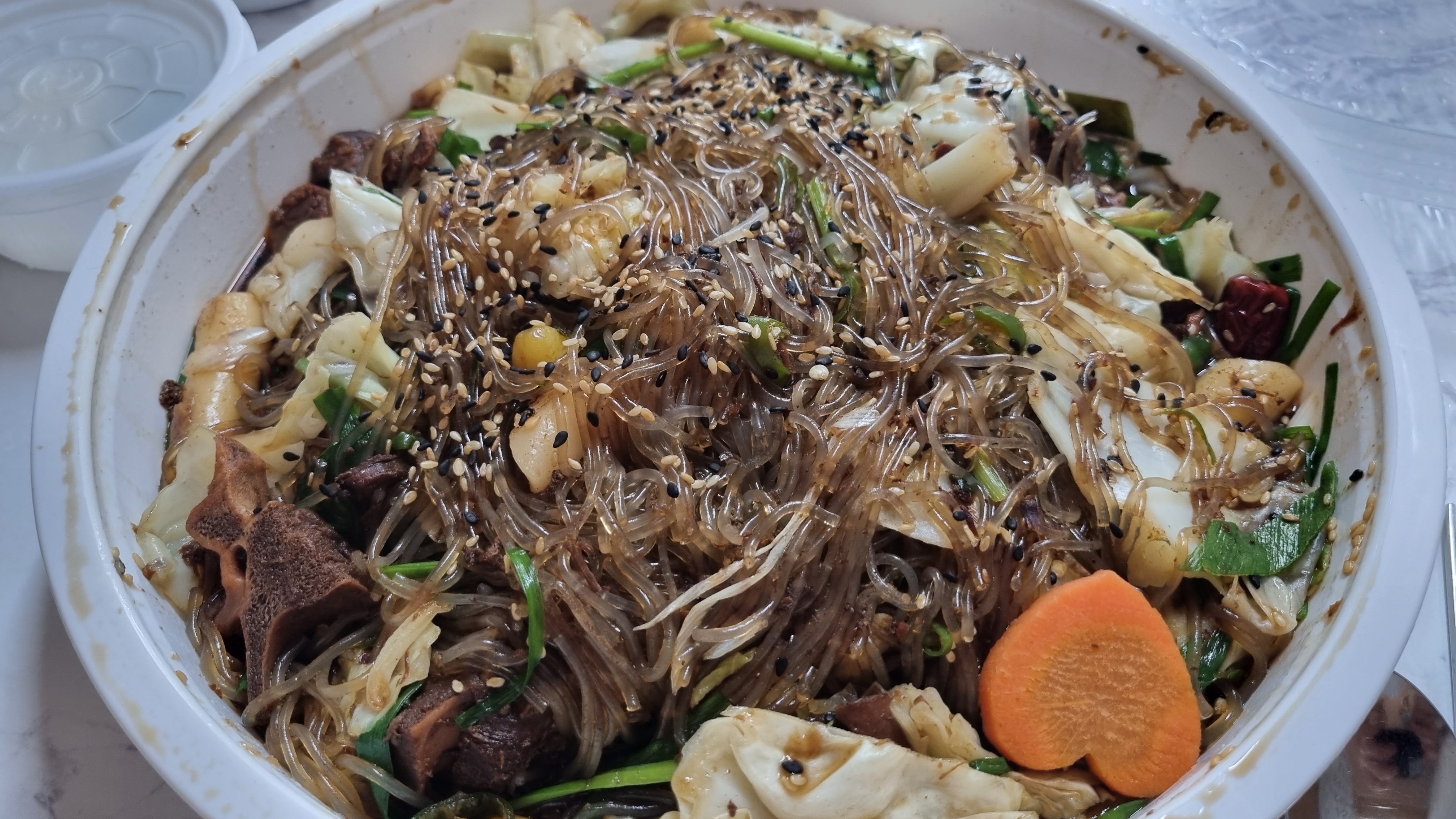 등뼈도 맛있지만 떡이 들어가 있는데 이것도 맛있고 특히 애들과 함께 먹으면 애들이 이것 먼저 먹어 인기가 좋습니다. 또한 당면이 들어가 있는데 일반 탕이나 떡볶이에 들어있는 맛과는 완전히 다릅니다.