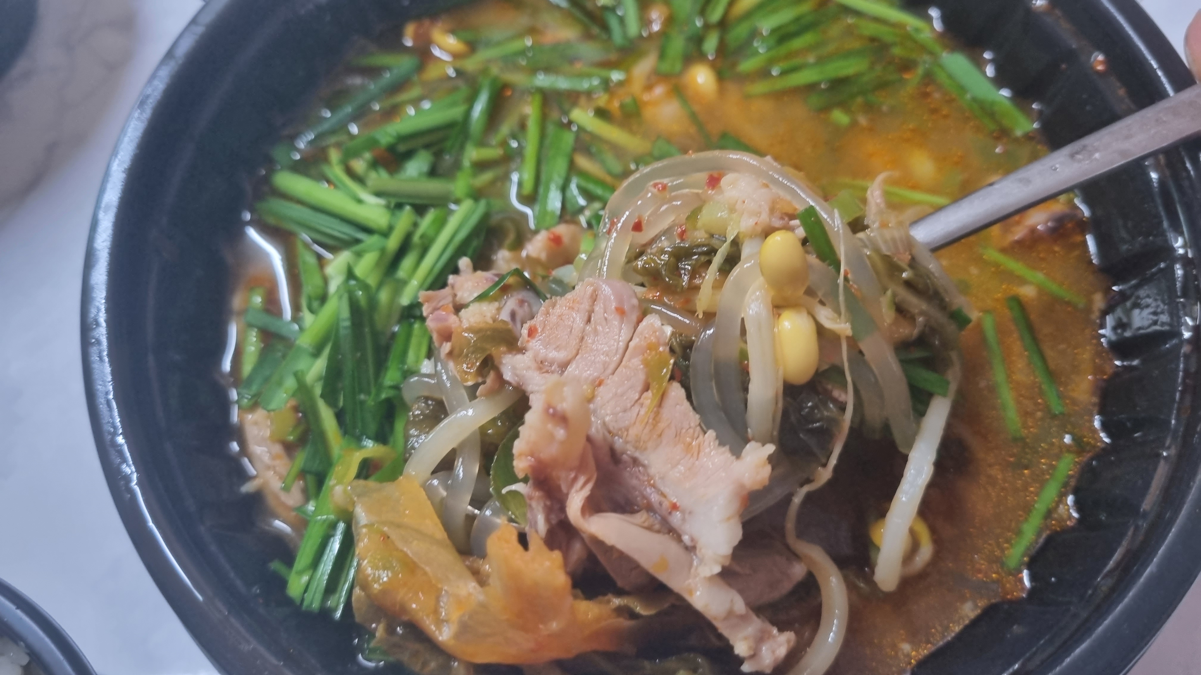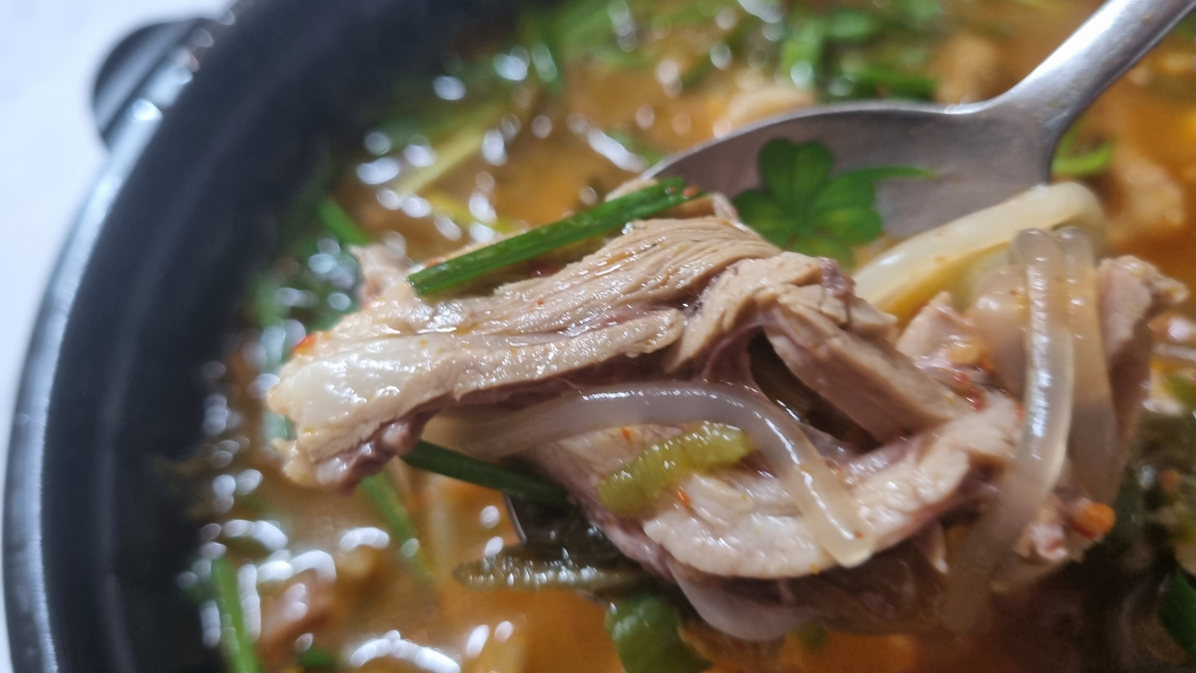 부추가 가득담기고 수저로 저어보니 선지가 많이 보이네요 국물도 맛이 있고 콩나물이 들어 있어 부추와 선지 콩나물등이 조합을 이루어 입안에서의 느끼는 맛이 엄청 좋습니다.