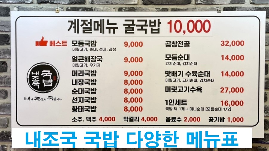 드라마에서 패러디 한듯한 것으로 내가 조선의 국밥이다 이것이 공식명칭이고 약칭이 내 조국 국밥인데 상당히 맛있기로 소문이 있는데 아래에서 직접 주문하여 먹어 보겠습니다.