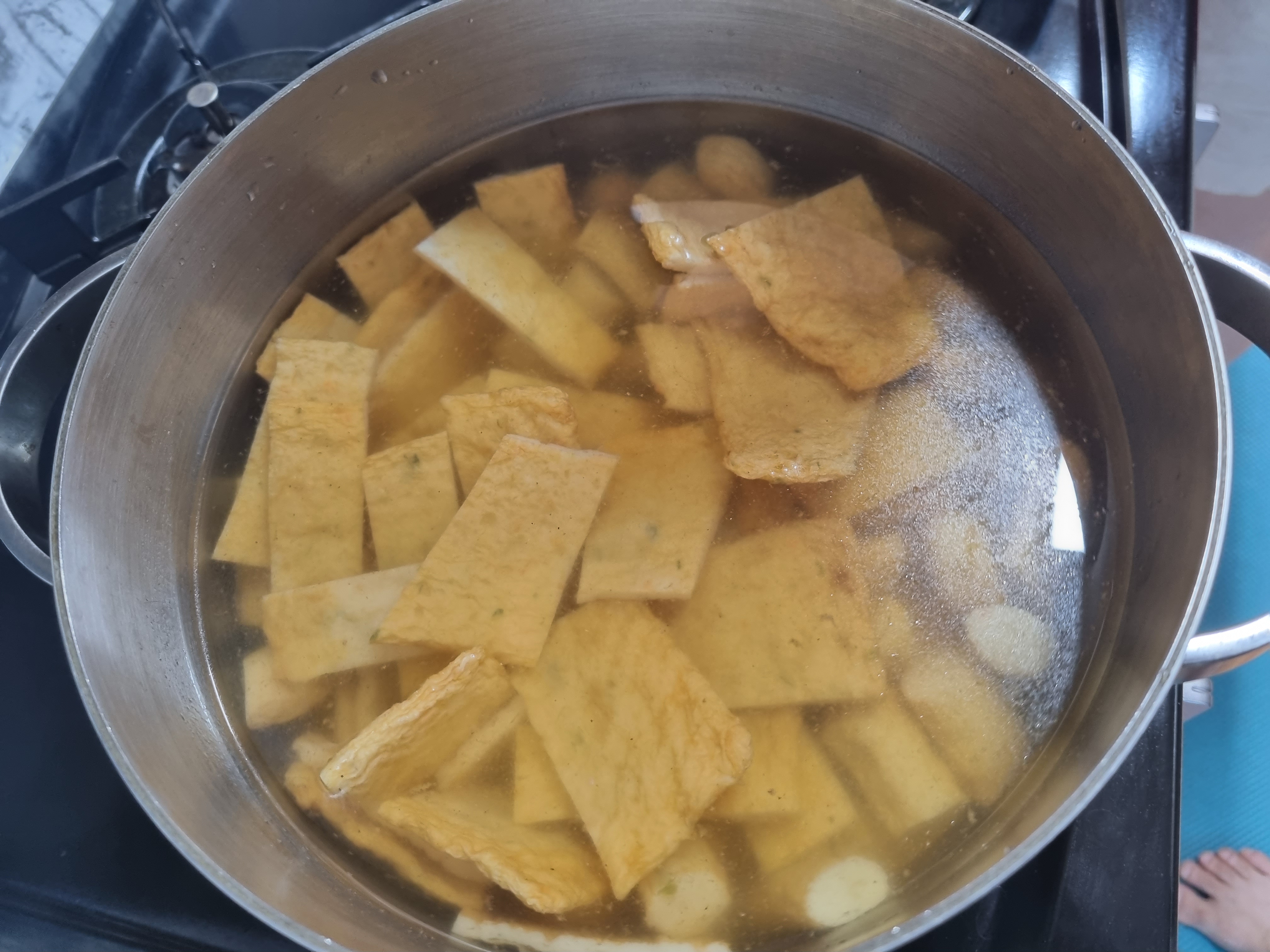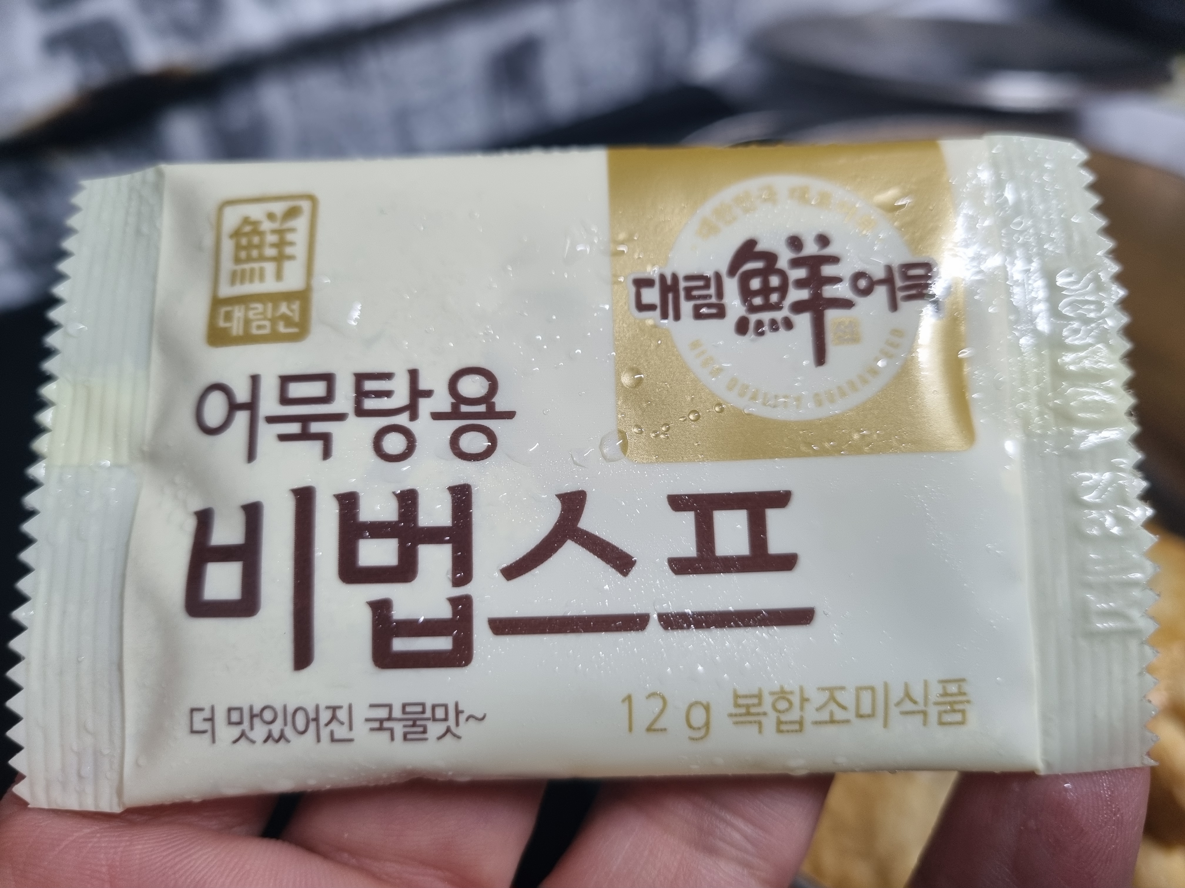 이후 비법스프를 넣습니다. 근데 이 수프가 라면 수프와 비슷한 효과를 내어 이거 하나면 아주 맛있고 시원한 어묵국을 많들 수 있고 다른 재료를 넣지 않아도 완전히 맛있습니다.