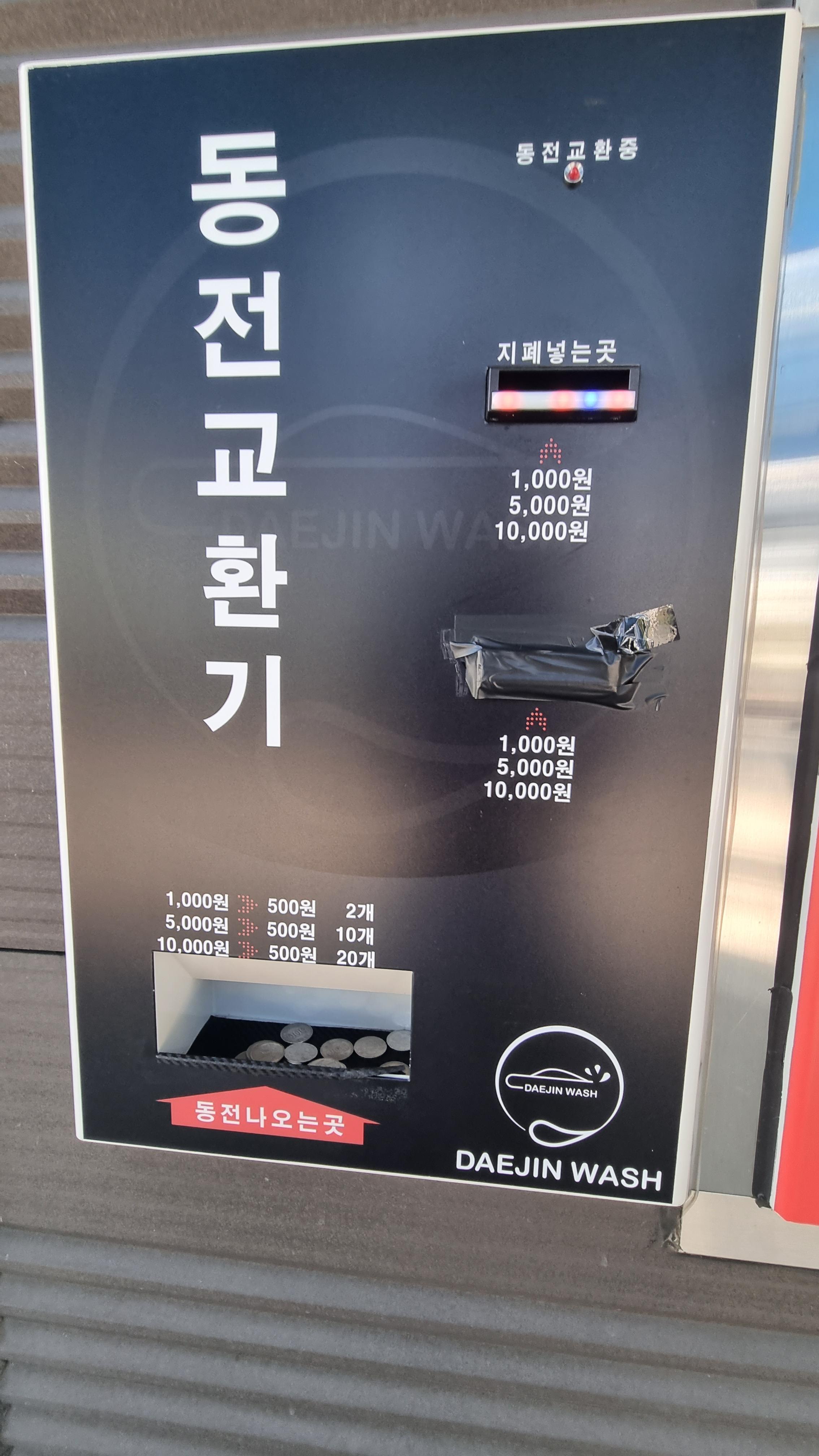 모든 코스 사용은 500원 동전을 사용해야 하므로 일단 1만 원을 500원 동전으로 교환하는데 동전교환기를 가까운 곳에 있습니다.