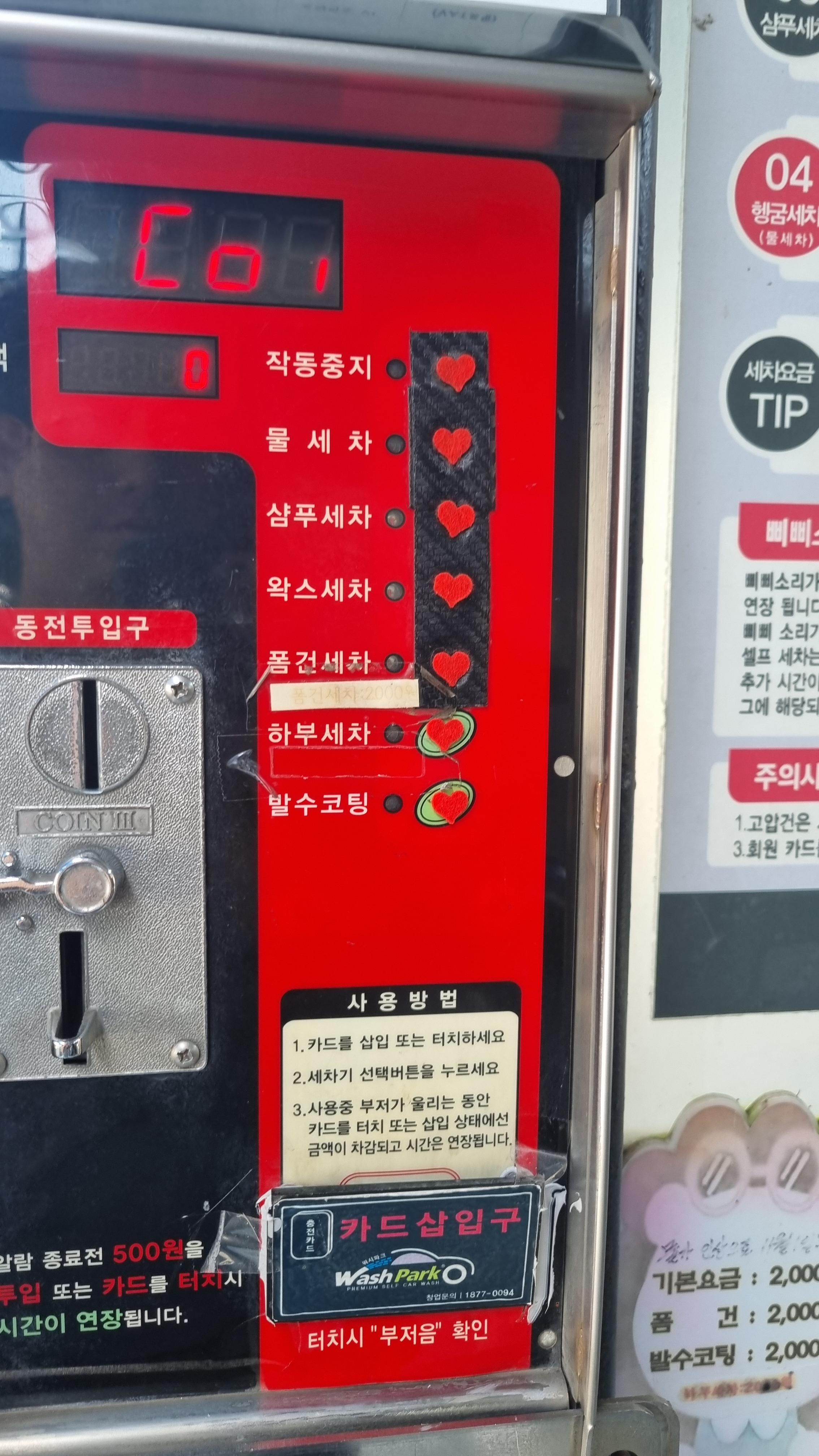 - 다시 1천원을 투입하여 청소기로 차량내부의 먼지를 모두 제거한다