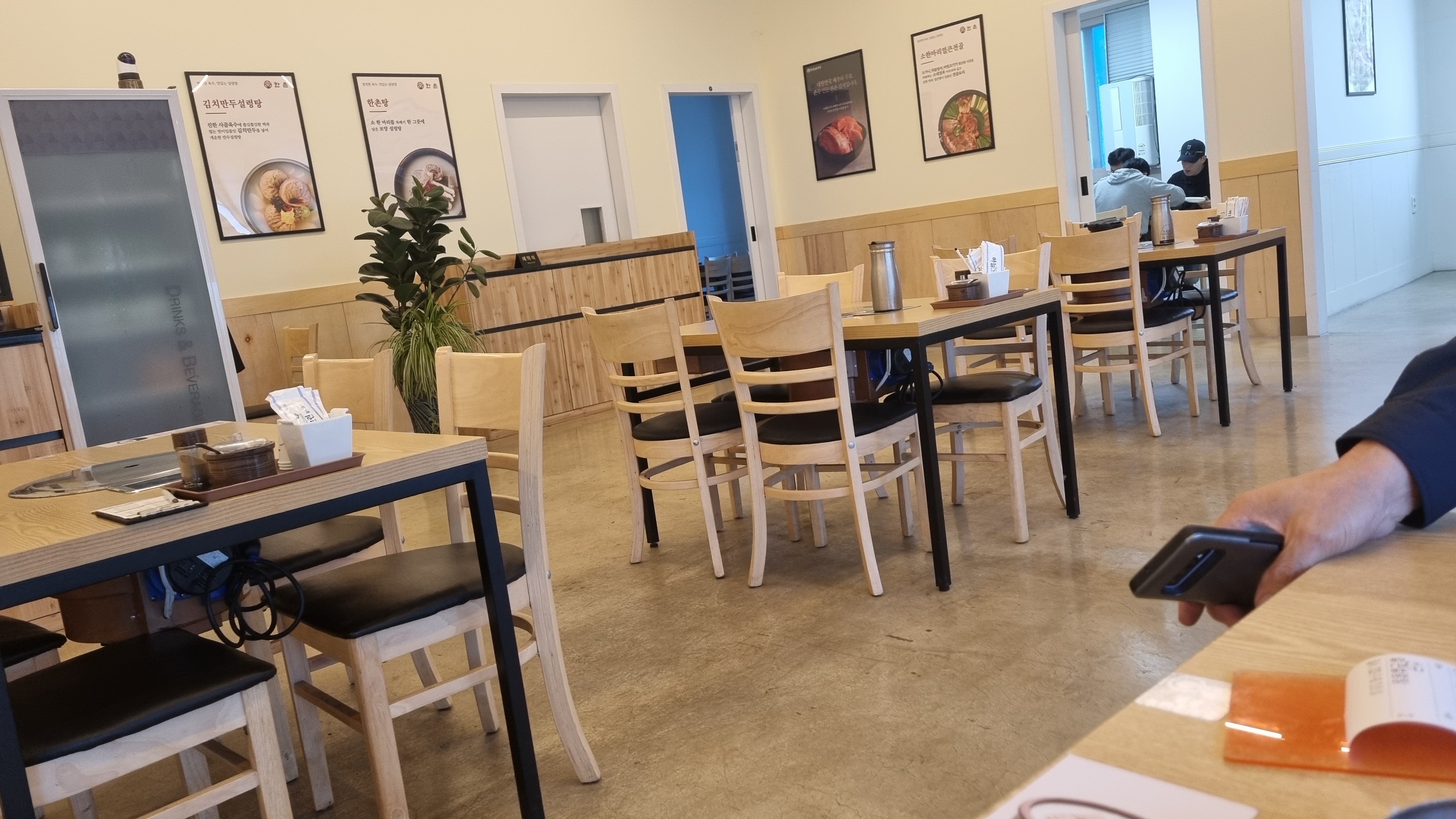 실내는 모두 입석으로 되어 있고 깔끔한 분위기입니다. 테이블이 20개는 넘게 있어 넓고 일부 룸이 있으며 자리가 많지만 계절에 따라 점심시간에는 줄을 서서 기다려야 할 때도 있습니다.