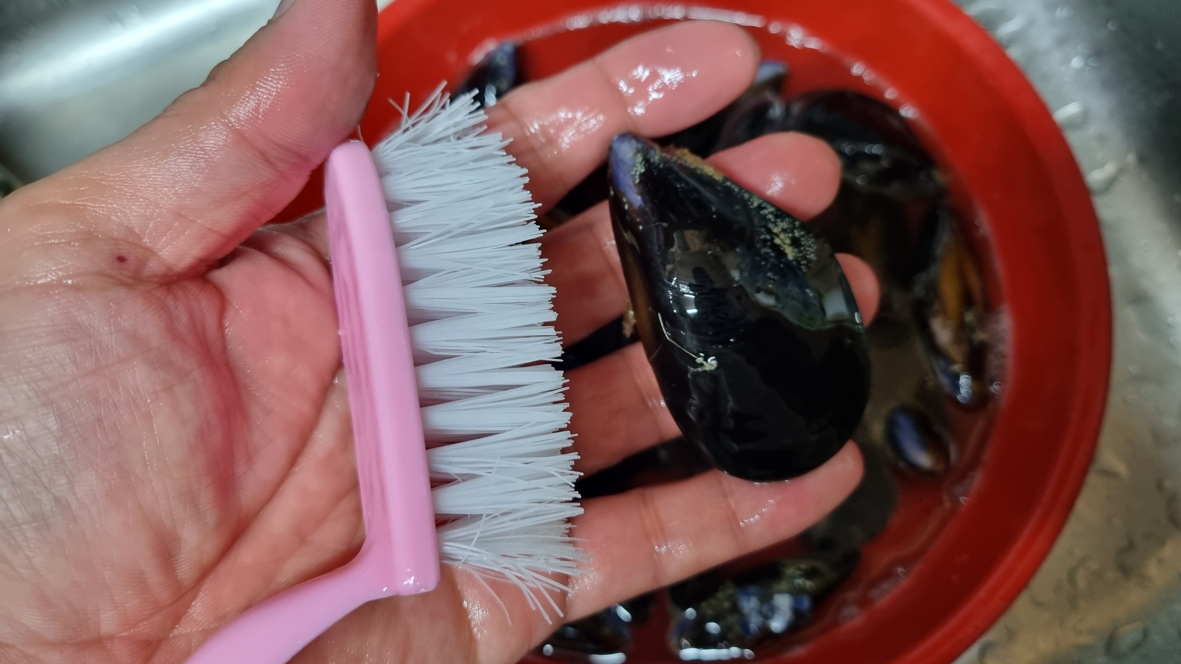손질은 일단 구입후 물에 담가 2번 정도 가볍게 씻어주면서 시작하는데 홍합의 특성이 족사에 있고 표면에 여러 가지 물질이 붙어 있는 경우가 있습니다.