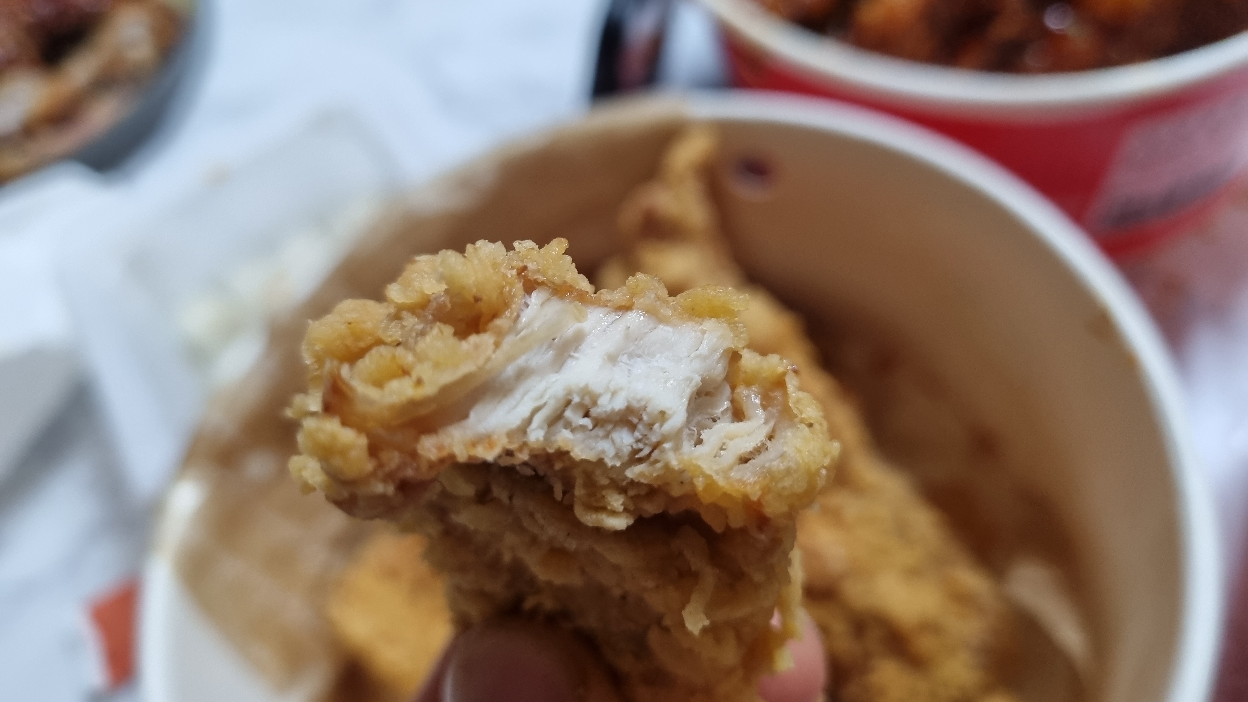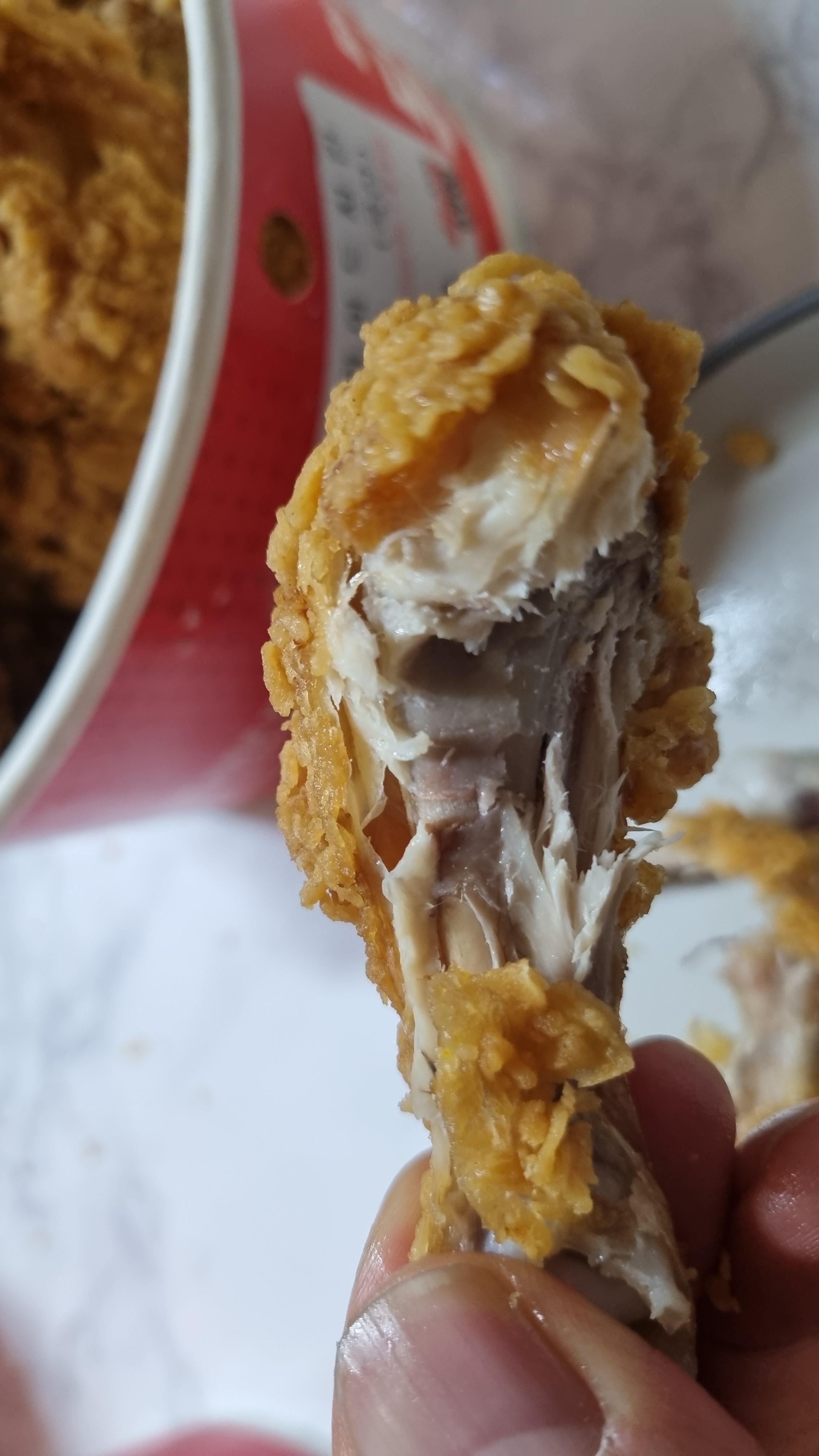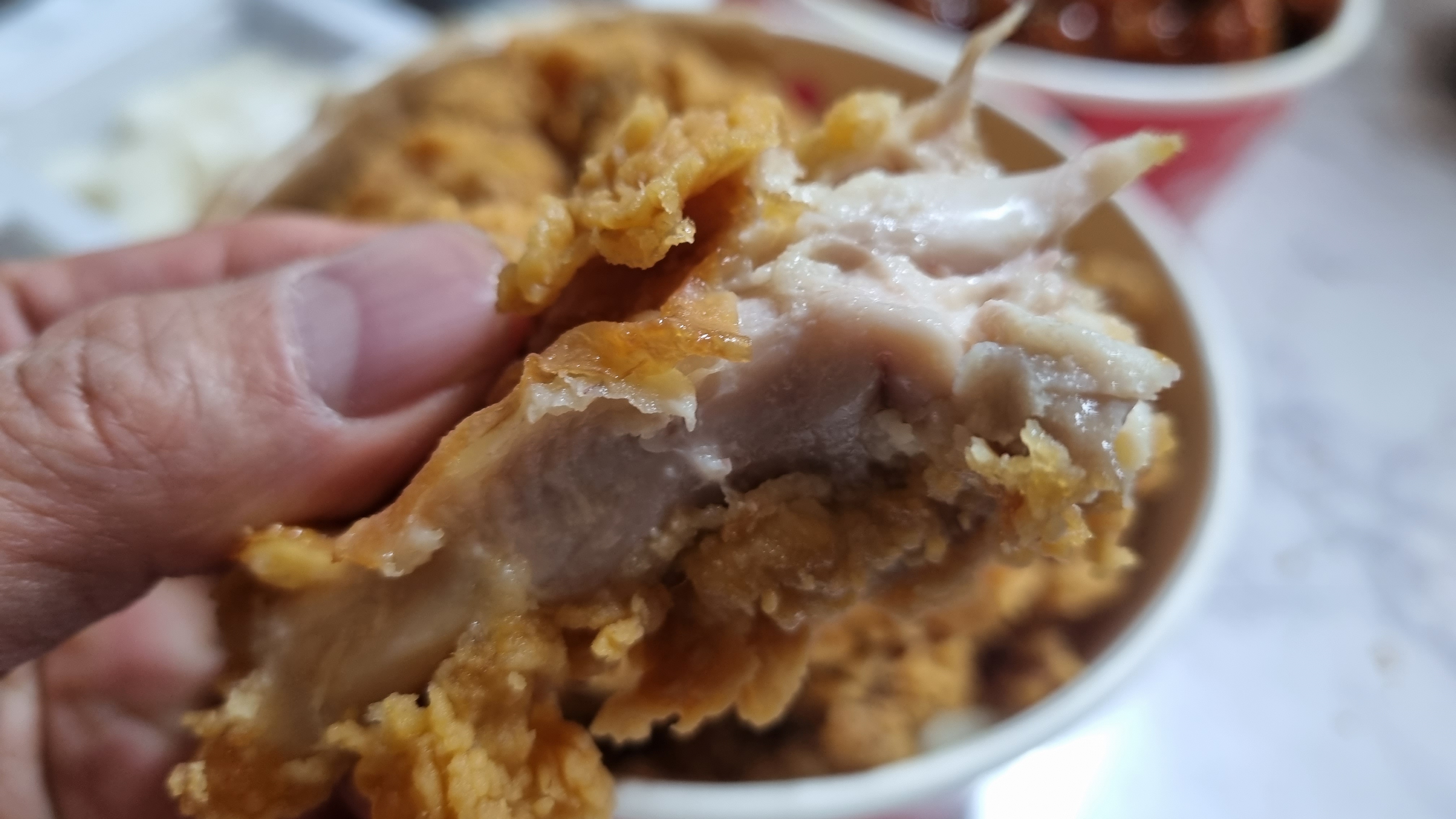 보기에도 너무 맛있게 보이고 오늘은 튀긴 지 얼마 되지 않은 듯 살짝 따뜻한 느낌이 있습니다. 마트에서 구입한 치킨의 최대 단점이 따뜻하지 않은 것인데 요즘은 식어도 맛있습니다.