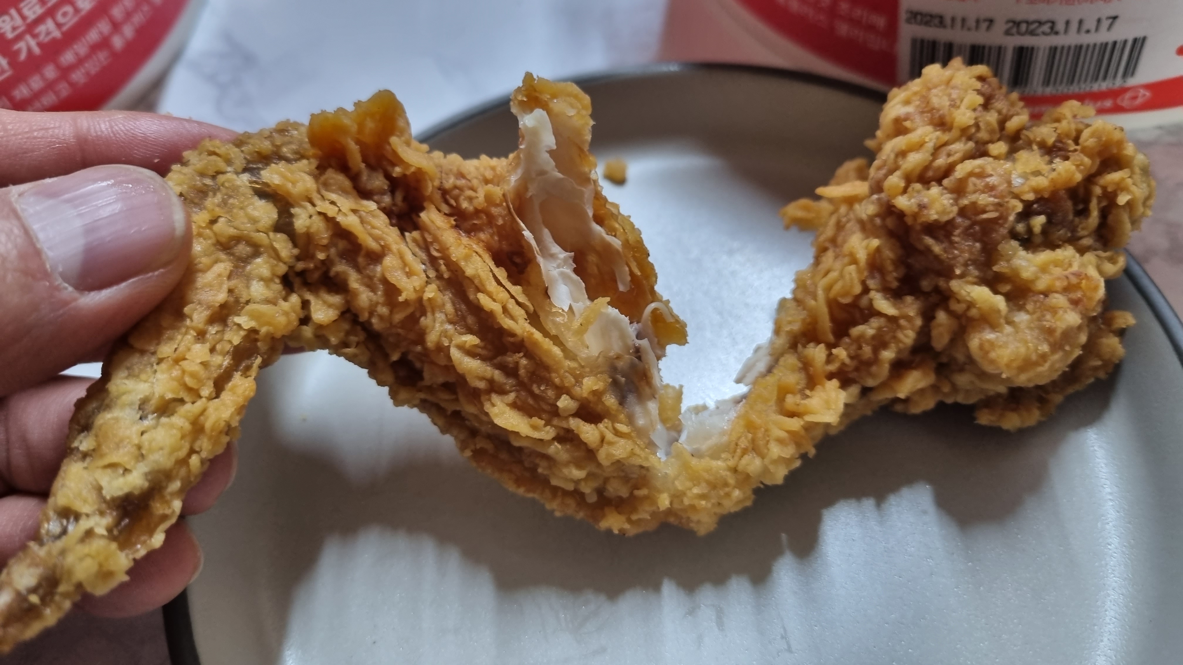 냉동치킨 에어프라이어 조리 후라이드 닭다리 날개 윙 맛