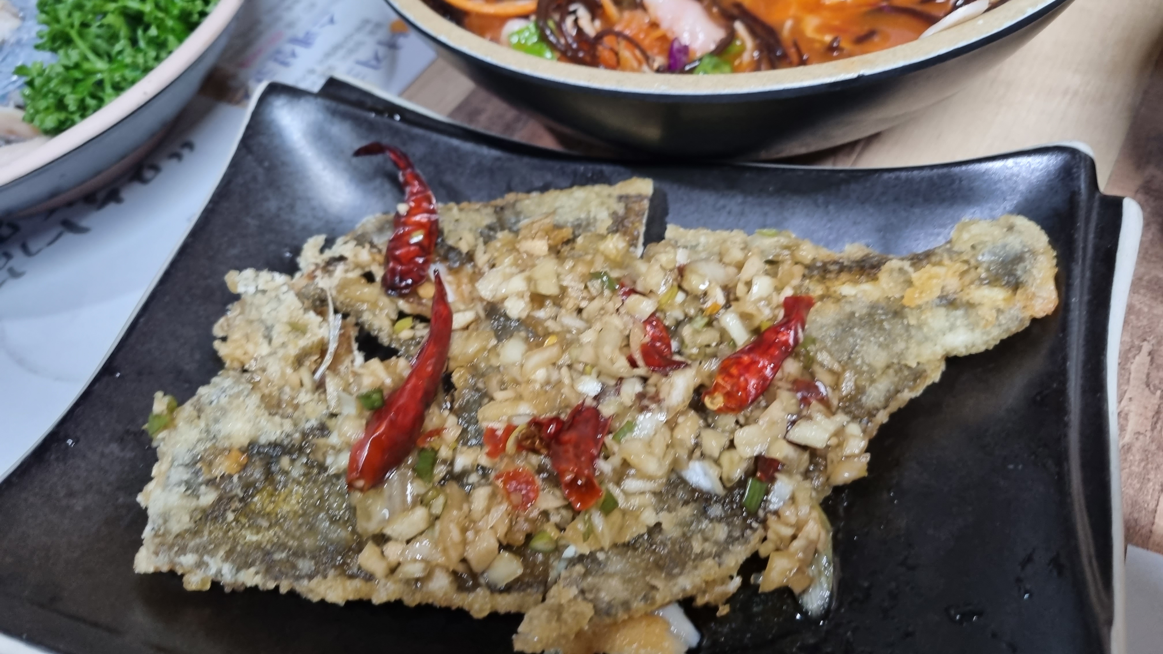 생선 튀김도 나오는데 생선 종류가 정확히는 안지만 가자미 종류인듯한데 정말 맛있었습니다. 바닷가에서 바다를 바라보고 먹는 재미가 정말 좋습니다.