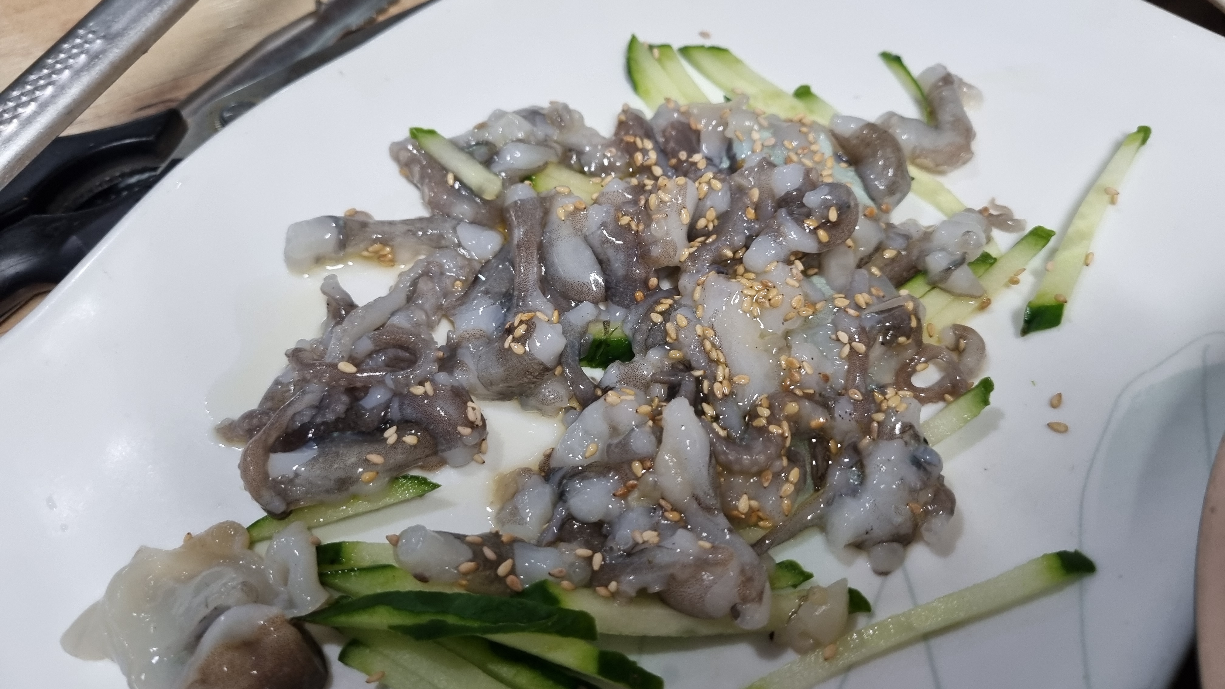 싱싱하게 살아있는것으로 먹기 좋은 크기로 잘라 참기름과 깨소금으로 양념을 하여 나오는데 모두가 제일 좋아하는 메뉴입니다.