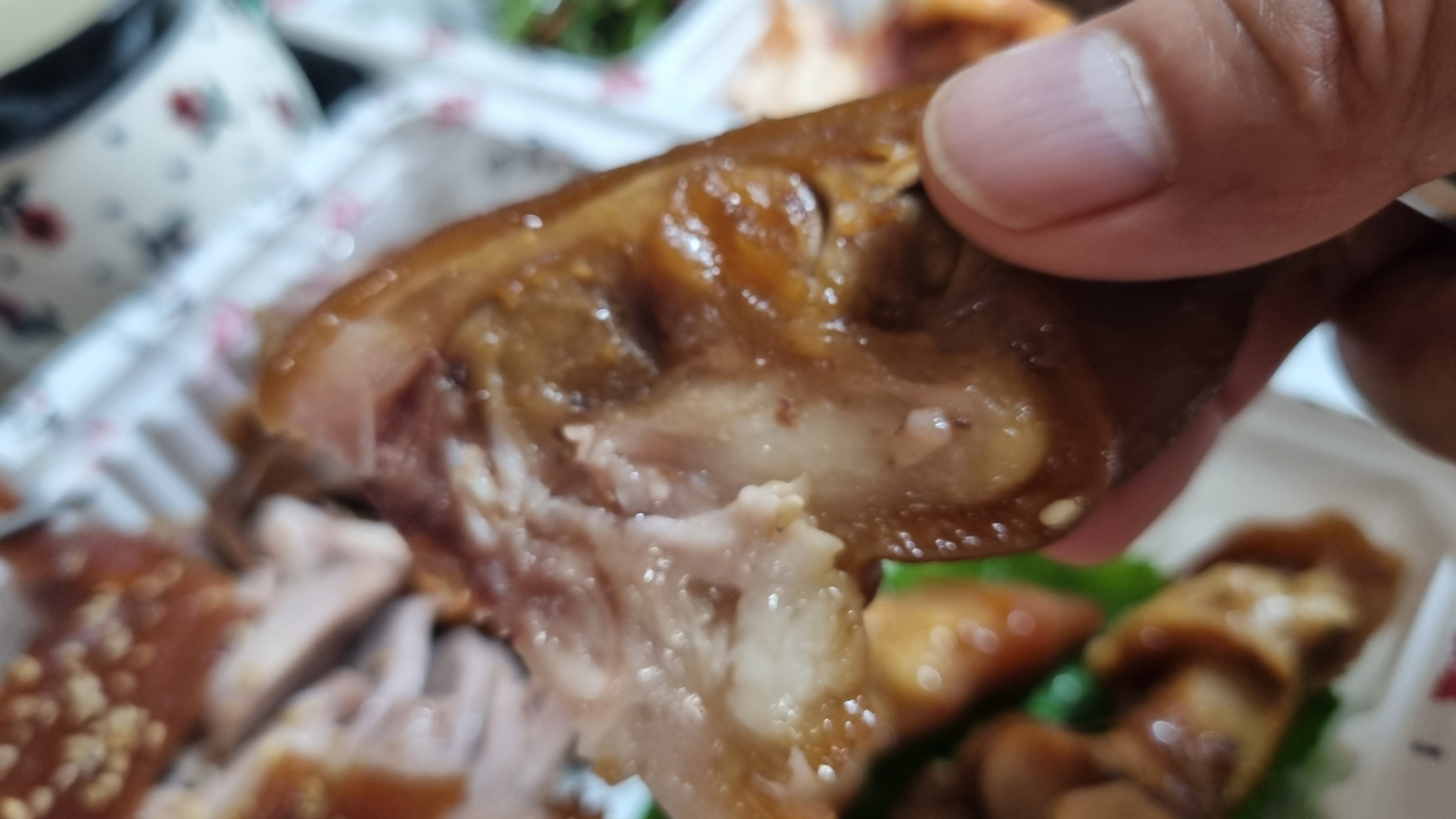 쫀득쫀득한 맛의 족발 역시 이맛으로 먹는 것으로 특히 껍데기 부분이 너무 맛있습니다. 최근에는 기름에 튀기는 음식이 건강에 안 좋다 하여 물에 삶는 족발이나 수육을 더 선호하는 분들도 많은데 맛까지 좋아 필자도 치킨보다는 족발을 간식으로 더 선호합니다.