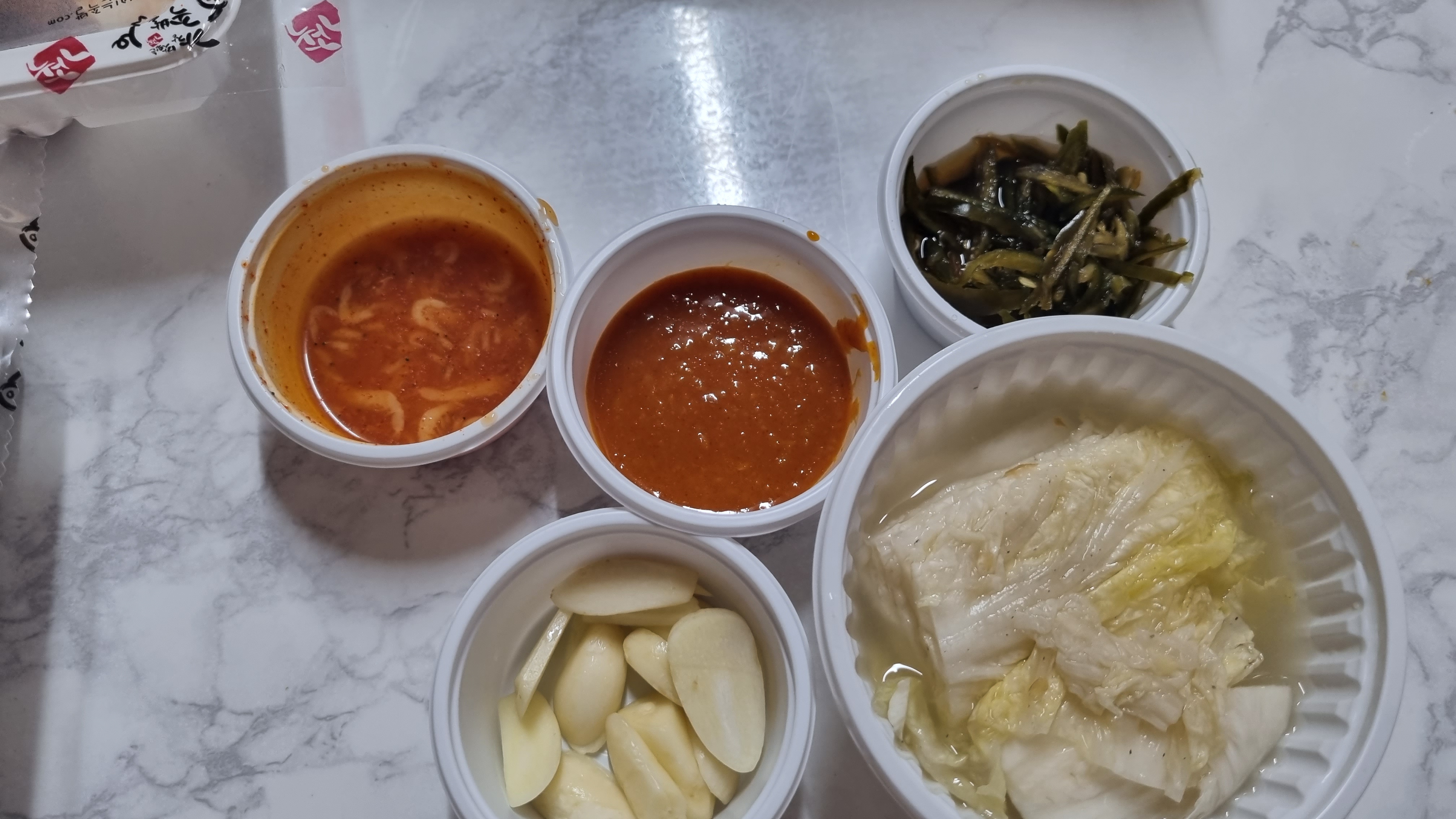 기본반찬은 상추와 부추, 김치와 양념들이 충분히 나와 먹는데 충분합니다.