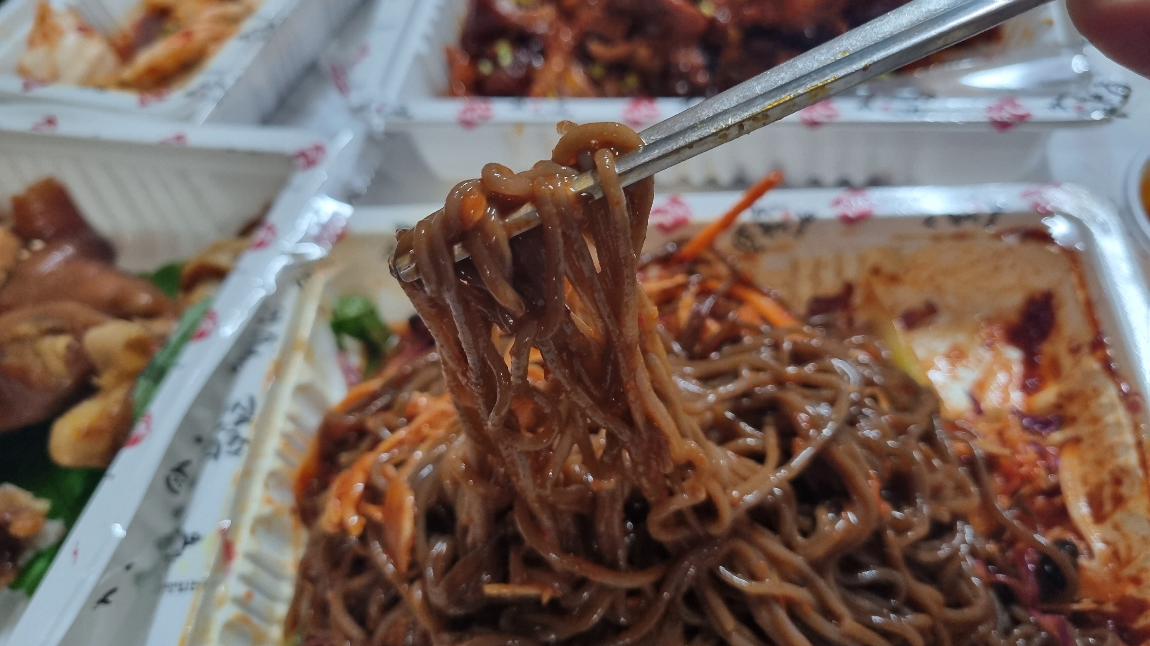 쟁반국수는 아주 조금 기본적으로 따라오는 서비스 메뉴인데 우리는 4천 원을 추가하여 조금 더 많이 주문했는데 필자가 이것을 너무 좋아합니다.
