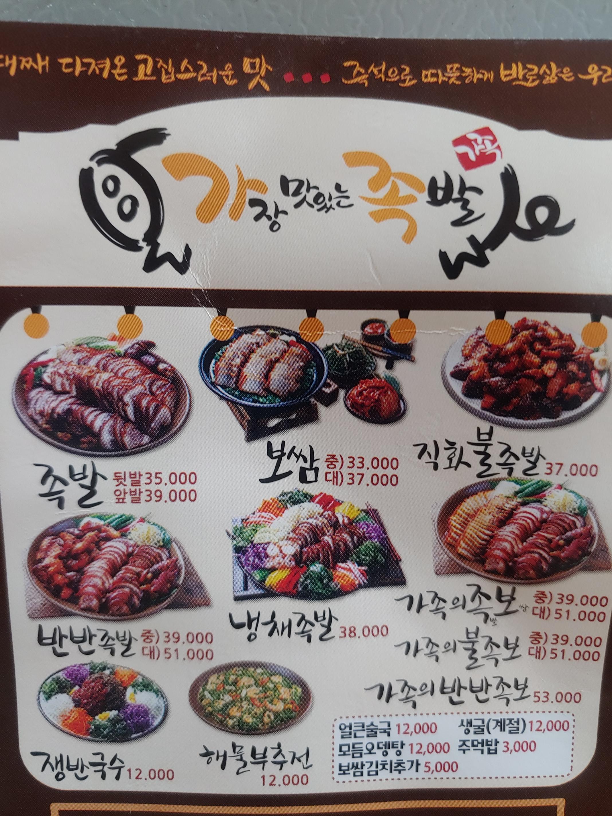 일반 족발에서 냉채족발, 직화불족발등 다양하고 쟁반국수와 해물부추전도 있습니다. 또한 세트메뉴로 가족이 모두 드실 수 있는 메뉴들도 있습니다.
