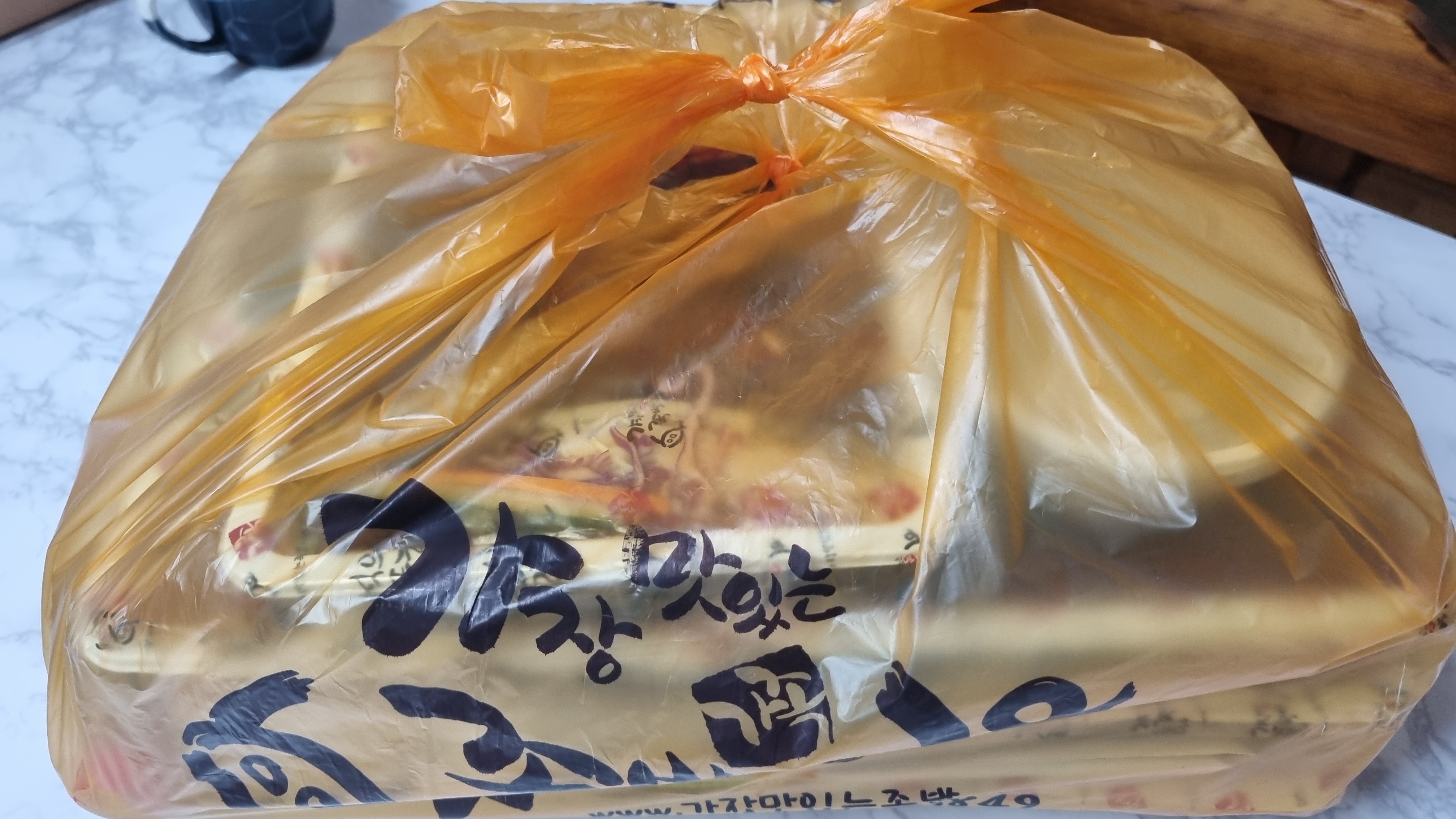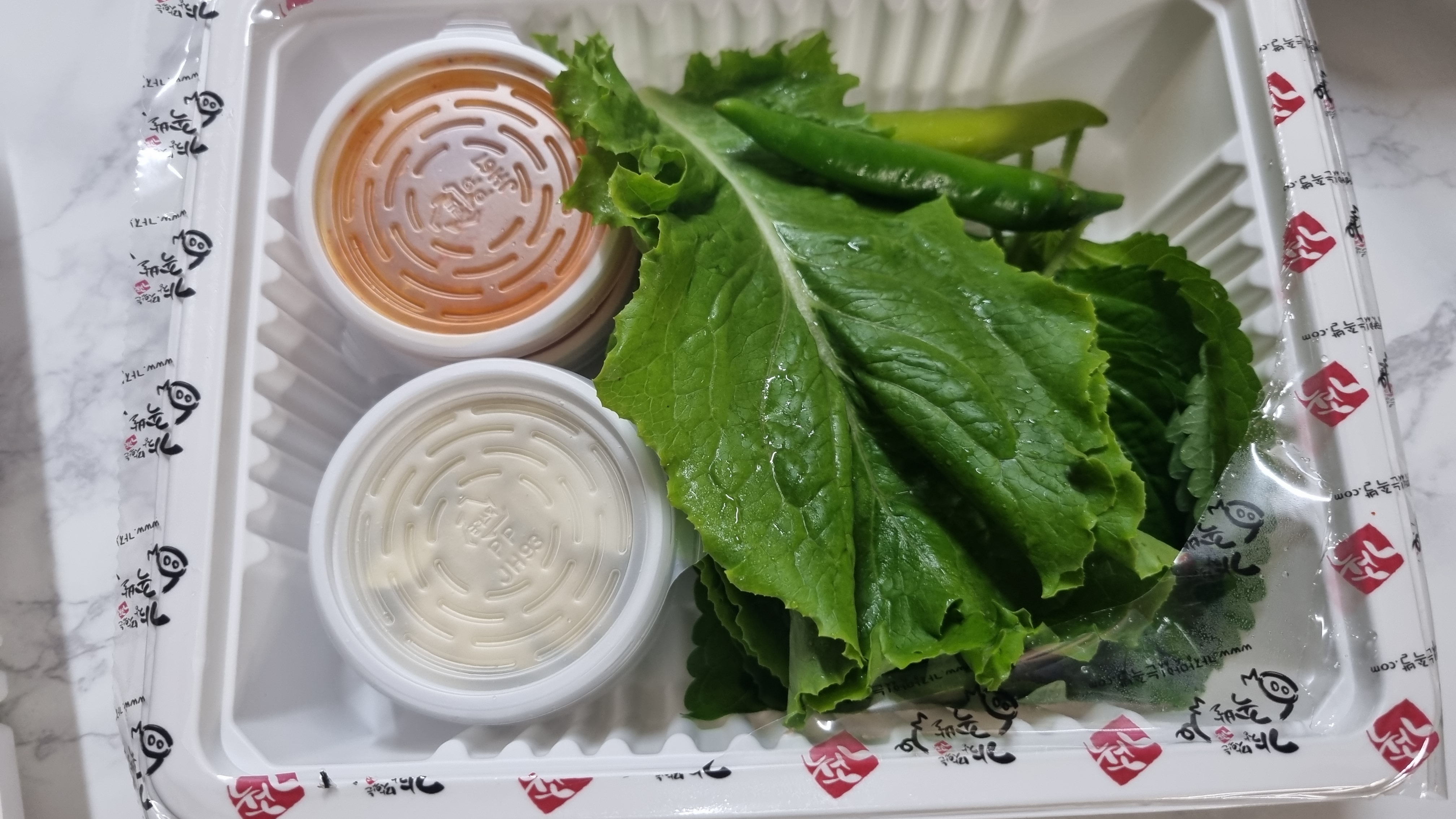 모든 메뉴와 반찬의 포장은 이렇게 깔끔하게 포장되어 배달되고 포장비늘을 제거할 수 있는데 플라스틱 칼이 함께 따라옵니다.