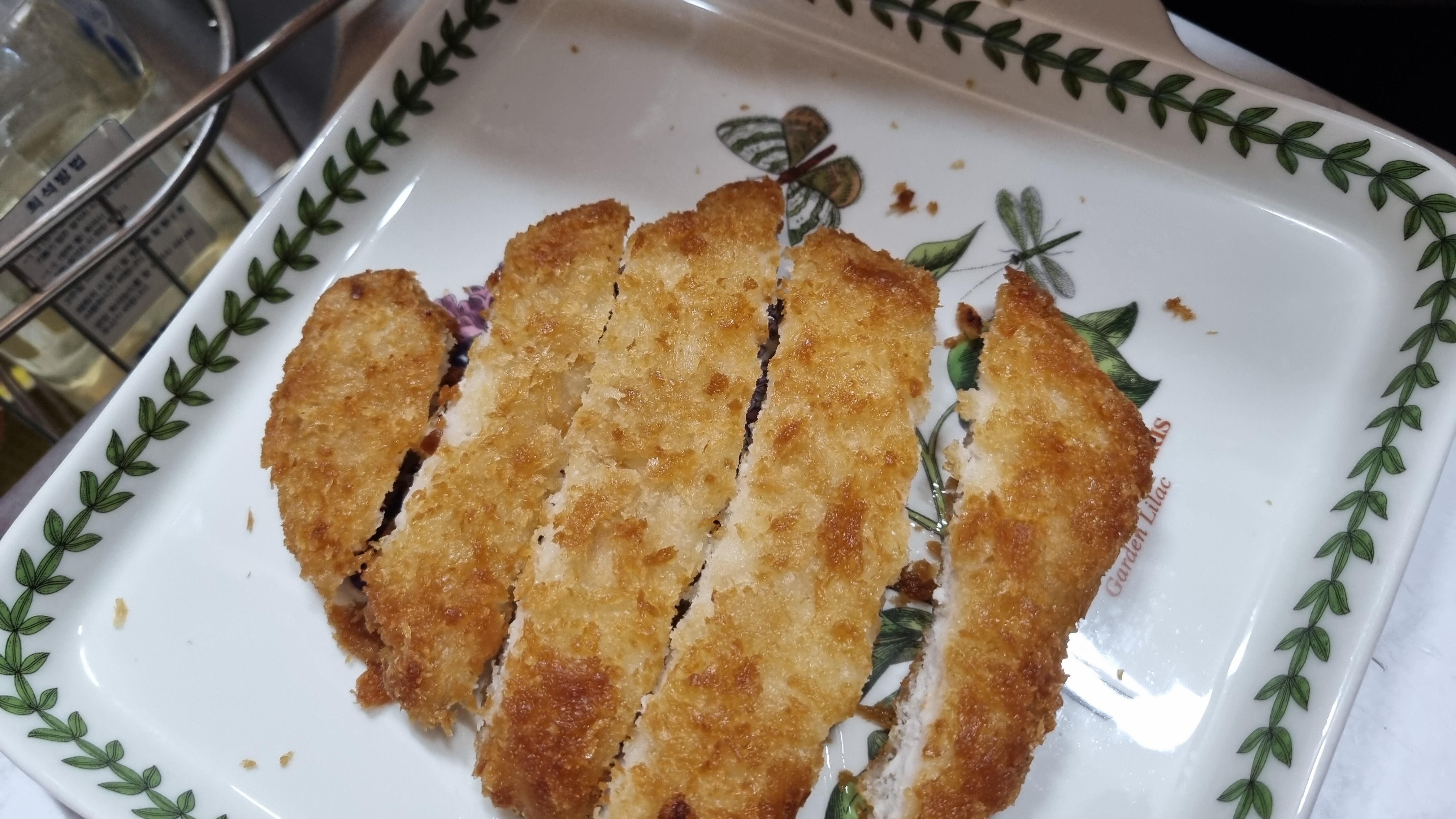 중간에 10분 정도 지나서 열어 돈가스를 한번 뒤집어 주었습니다.