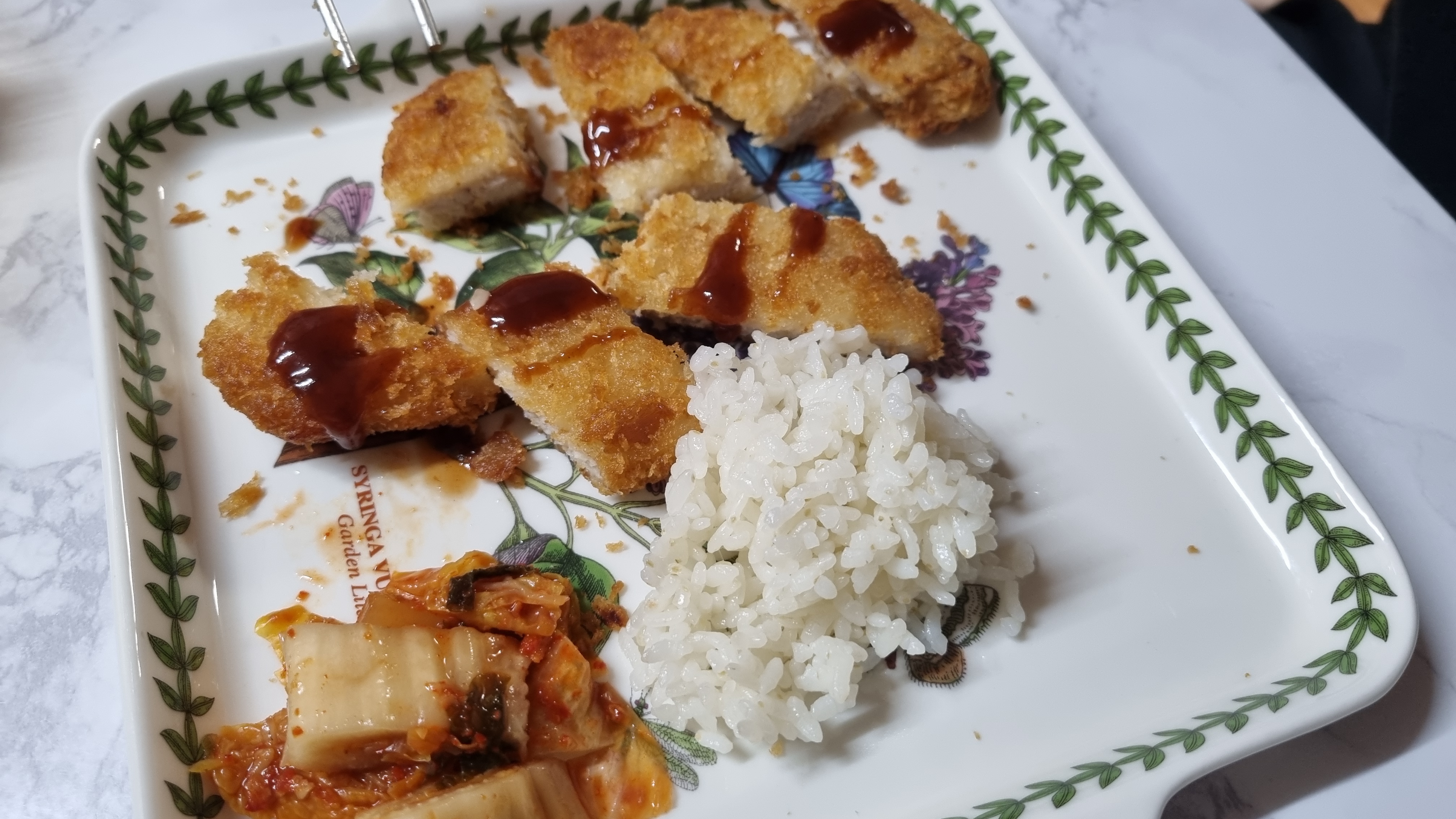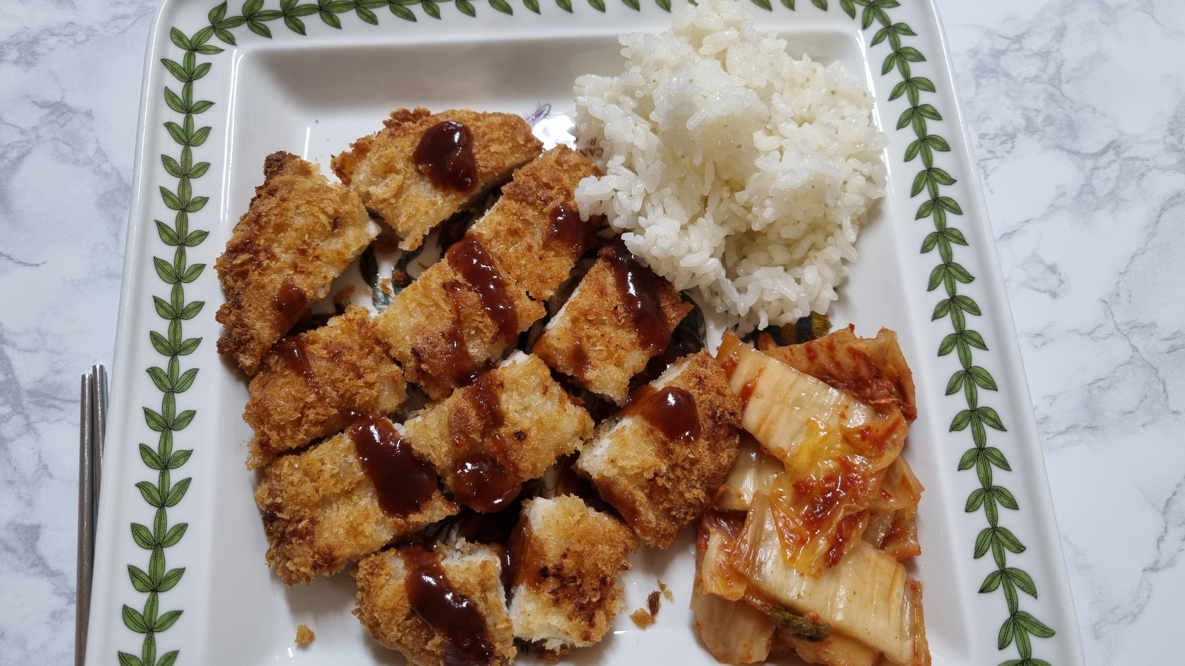 밥과 함께 김치등과 돈가스를 먹으니 정말 맛있고 전문점에서 먹는 맛과 거의 동일합니다. 누구나 쉽게 만들 수 있고 맛있게 드실 수 있습니다.