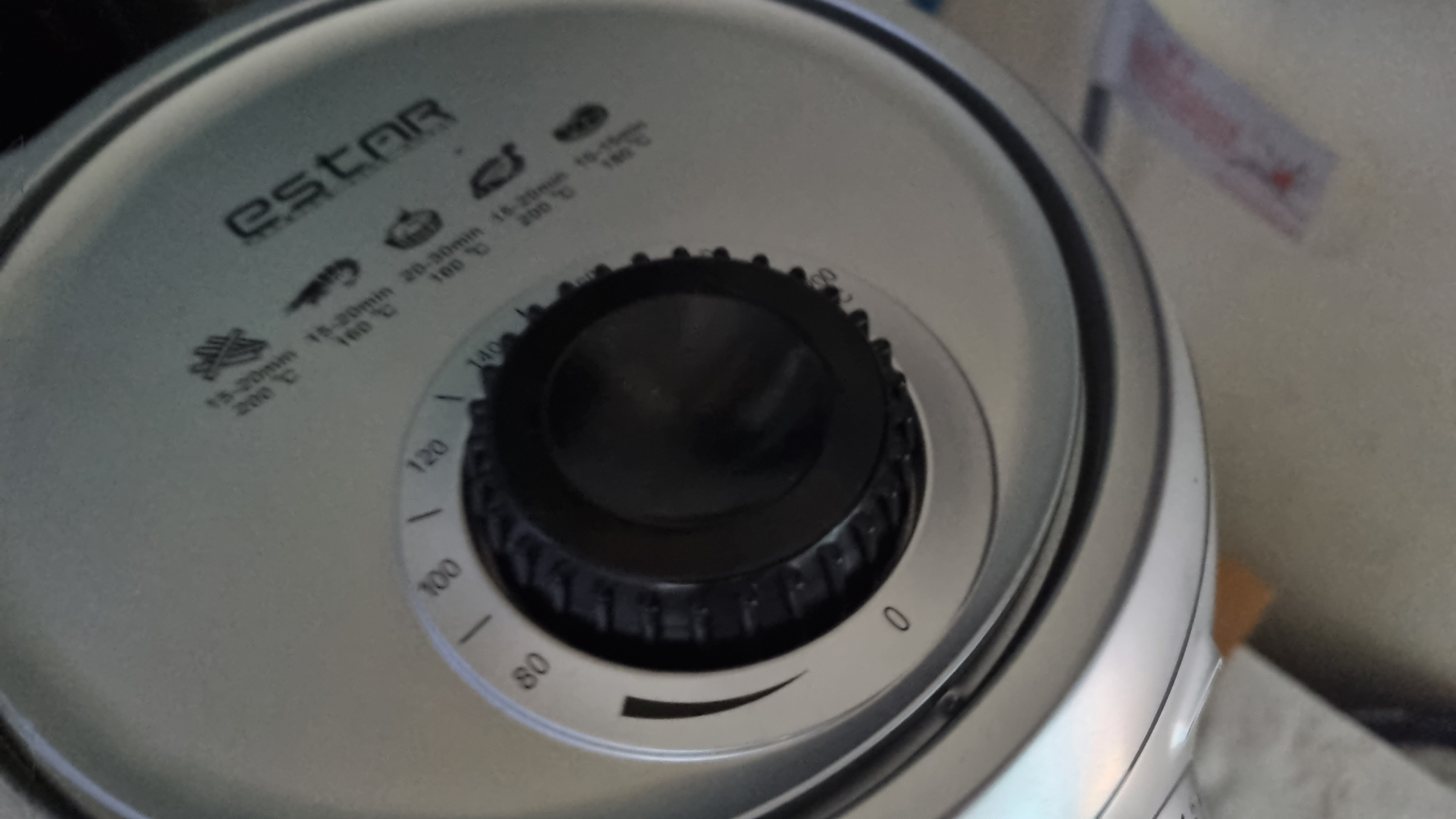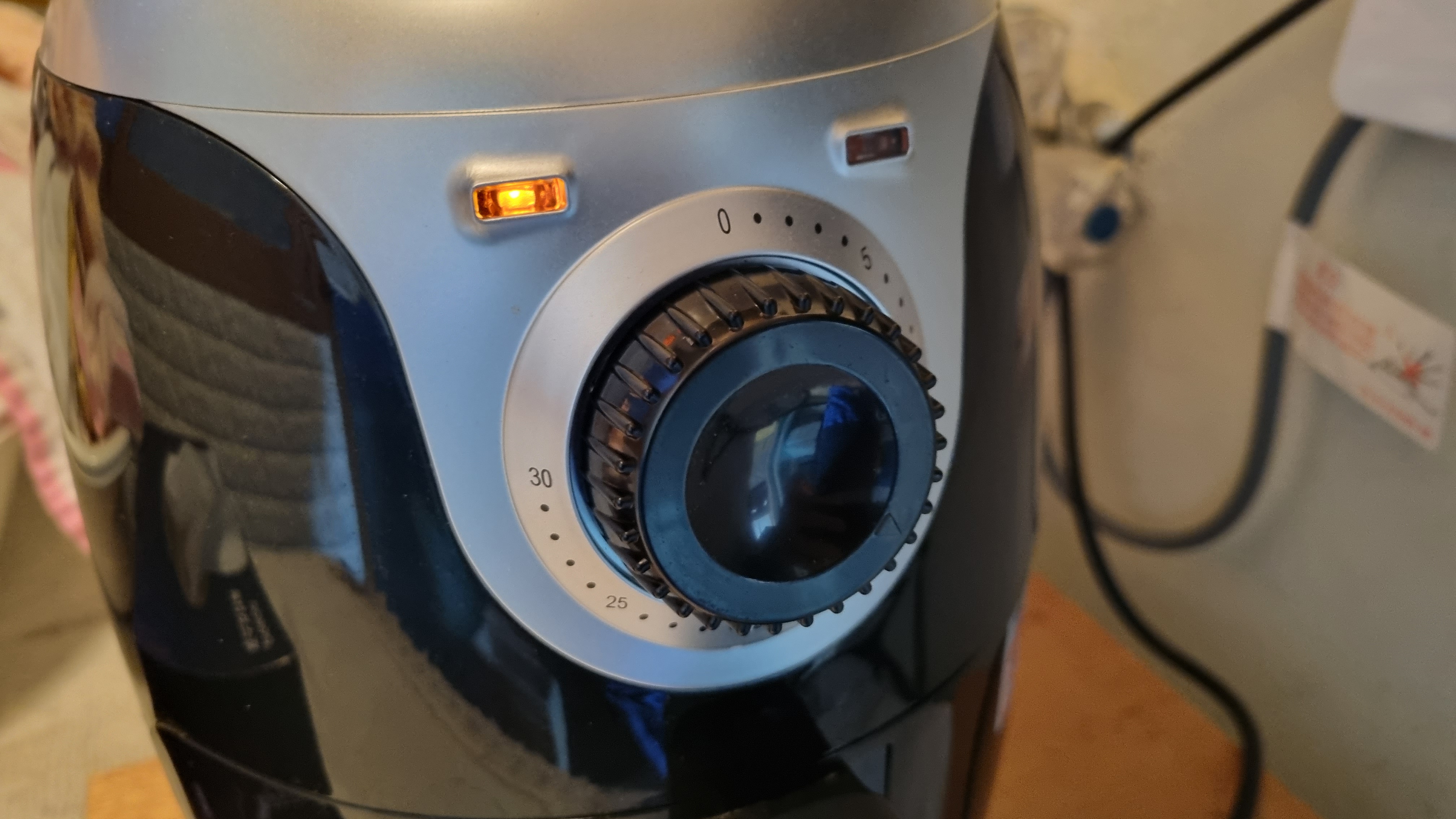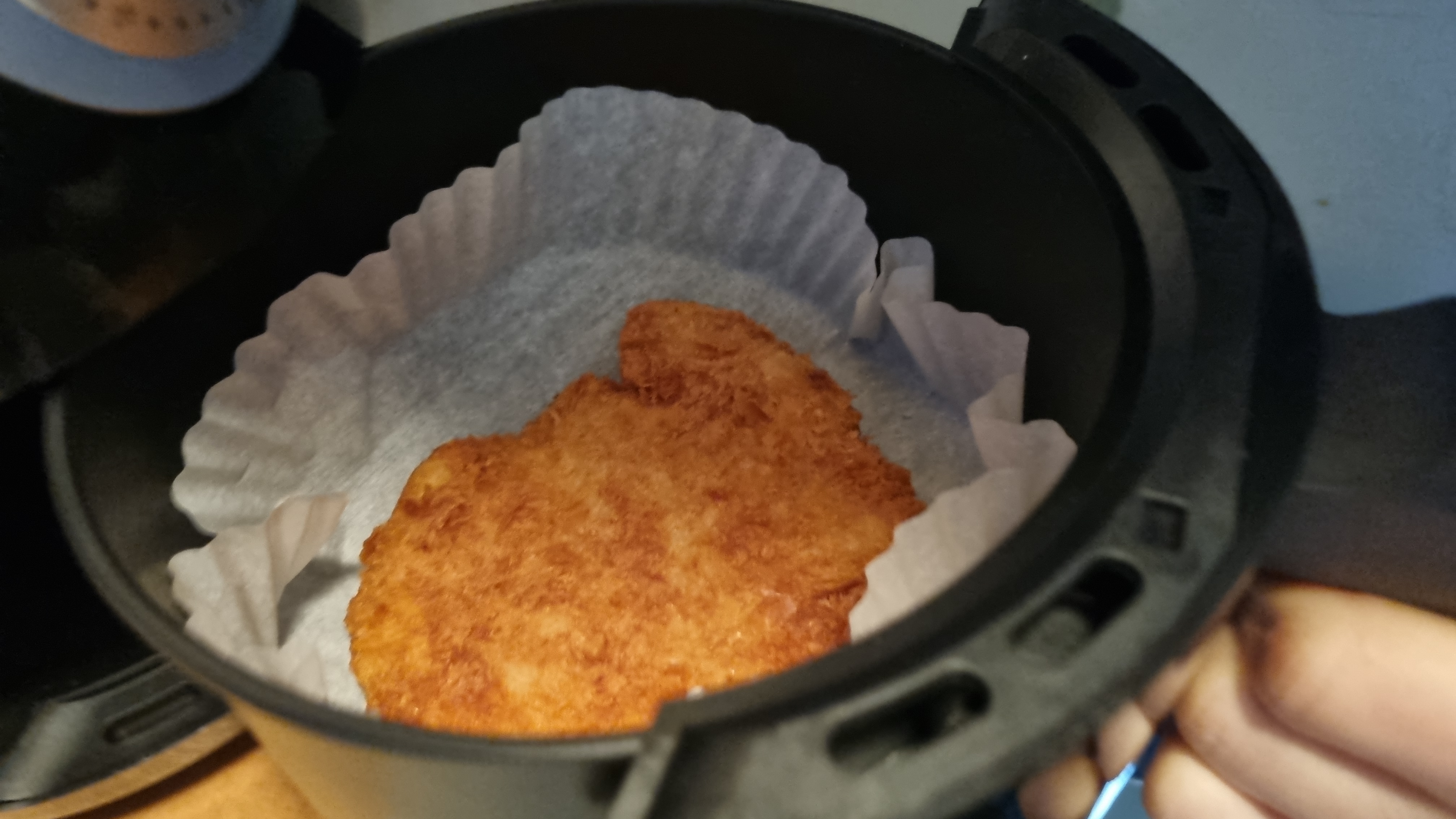 집에 있는 아주 작은 에어프라이어인데 먼저 미리 기기를 데우는 것도 좋은 방법입니다. 약 2~3분 정도 빈상태로 가동후 돈가스를 굽는 것이 좋습니다.