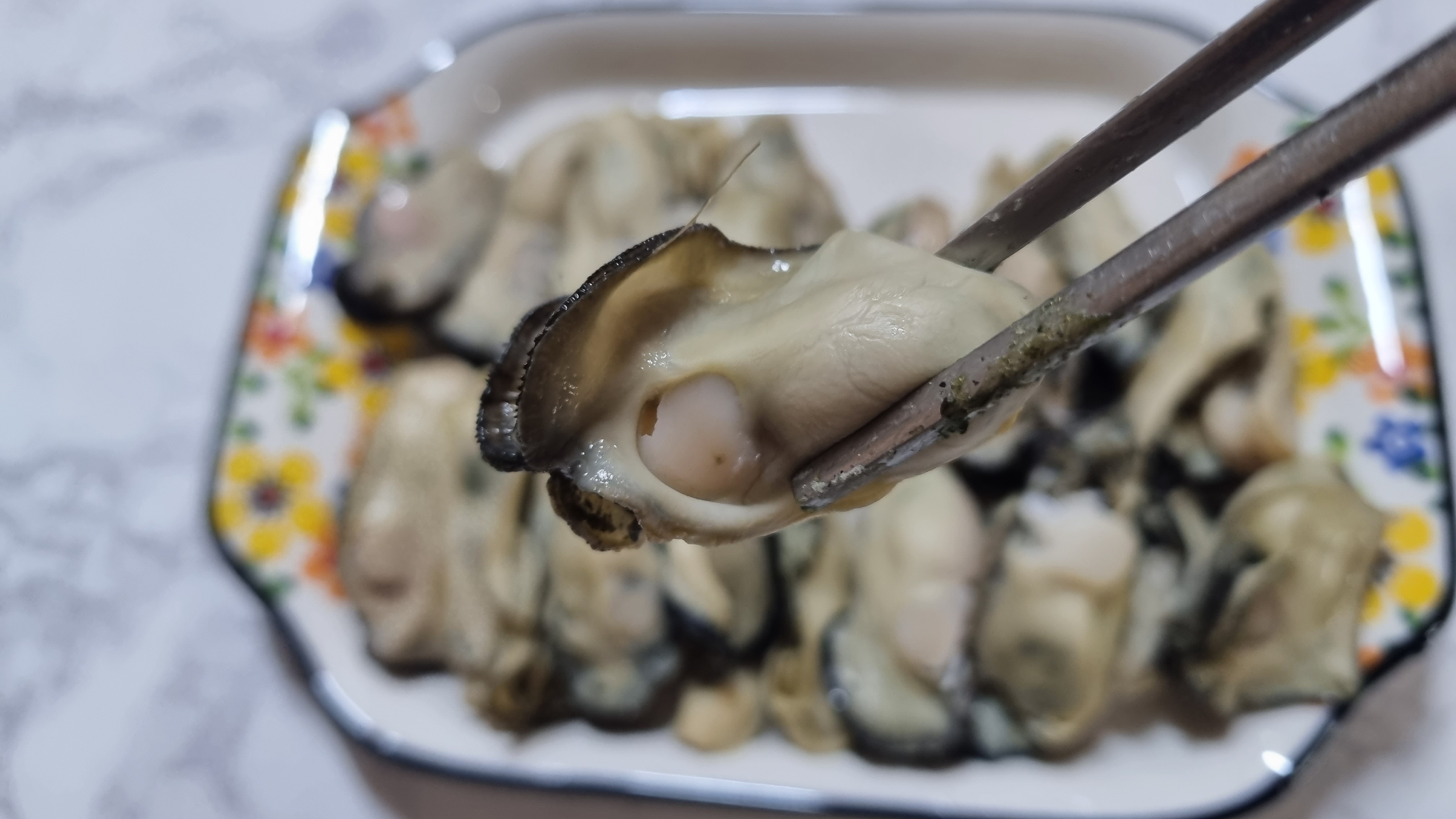 맛있게 삶아진 굴인데 대부분 적당히 입이 벌어져 있어 껍질을 손으로 까서 먹기 엄청 편합니다. 껍질을 벌리지 않고 있는 것은 칼로 하지 말고 제일 좋은 것이 돈가스용 칼로 사용하면 안전하고 잘 껍질을 벌릴 수 있습니다.