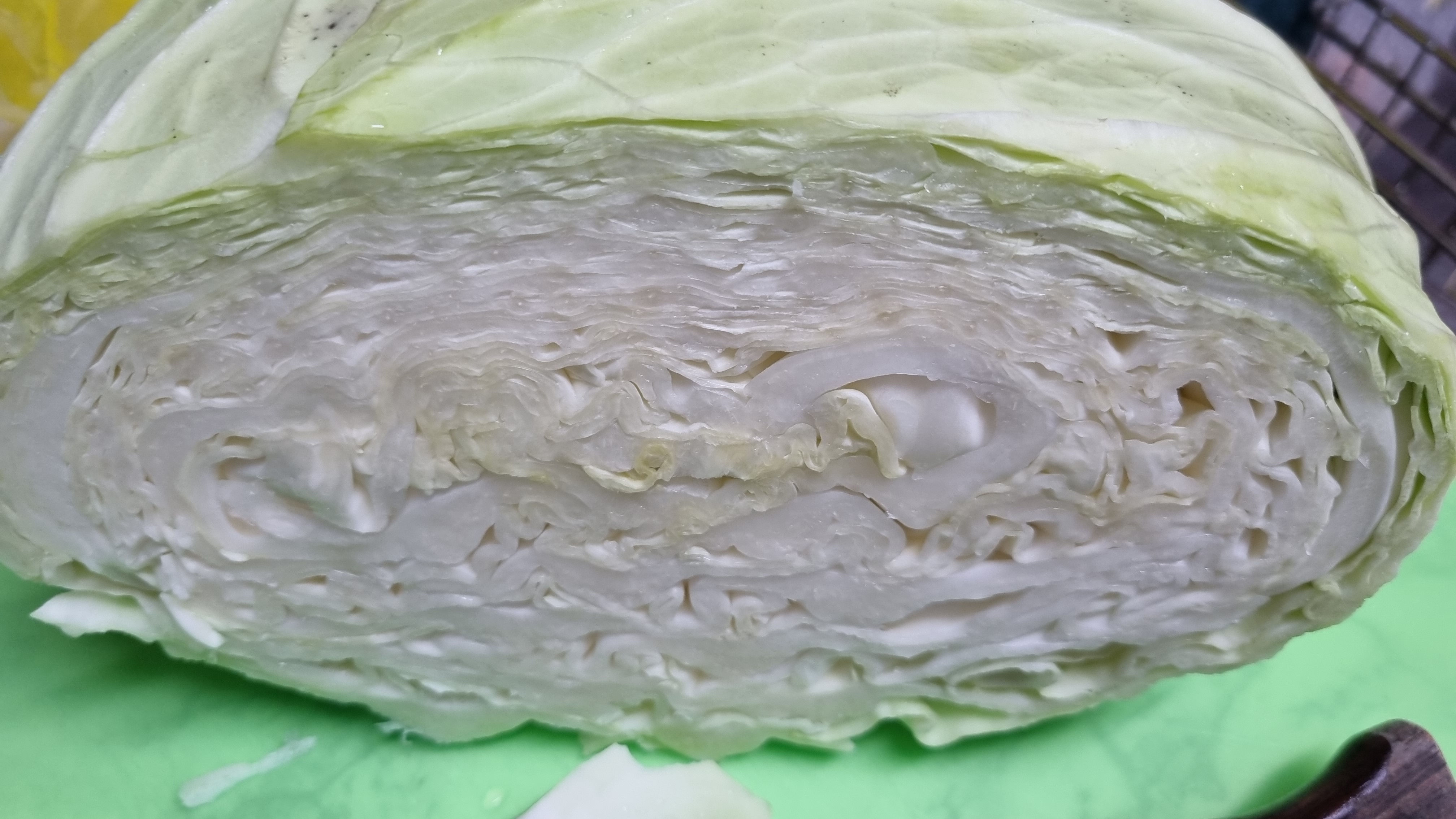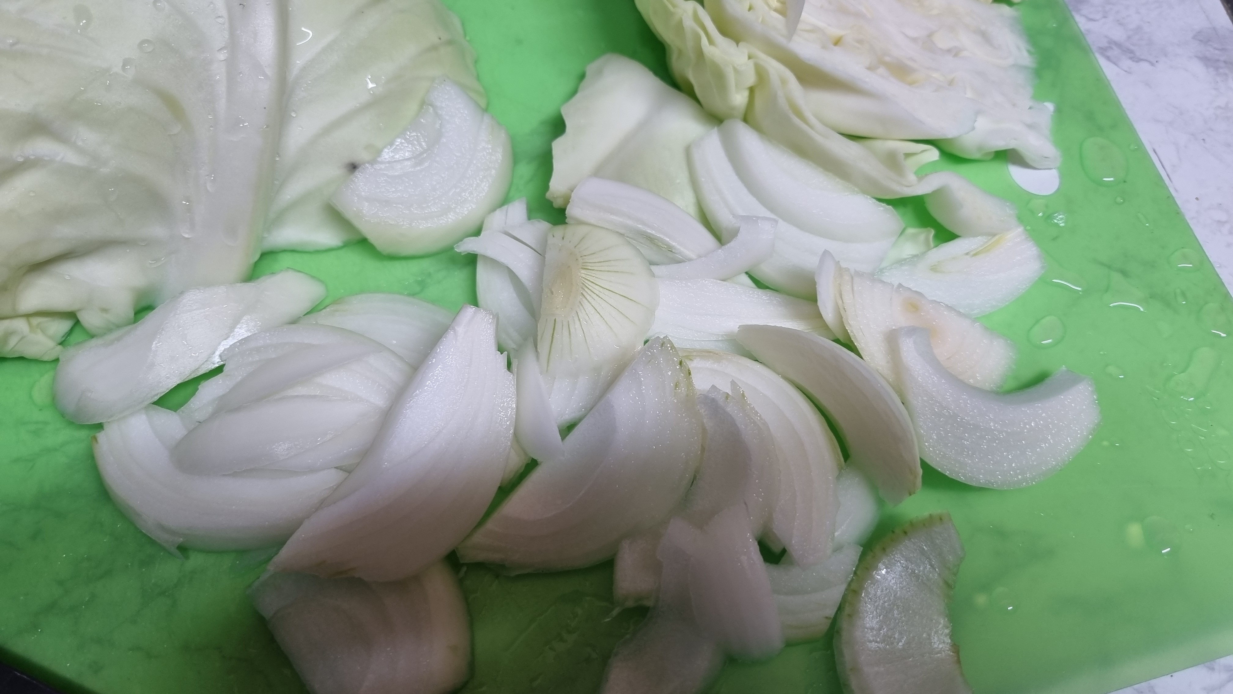 하나 한나 다듬기 시작하는데 양배추는 두께가 약 1cm 정도면 적당하고 양파는 평소에 다른 음식 만들 때 크기로 자르면 되겠습니다.