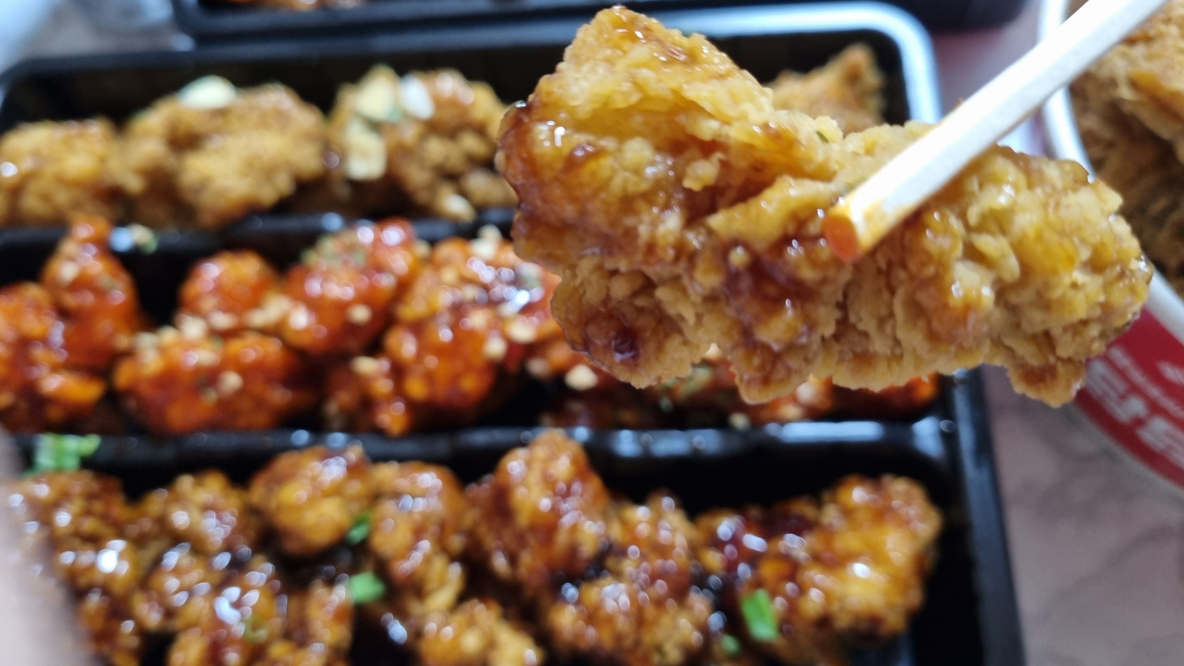 가족이 함께 드시면 본인들이 좋아하는 맛으로 골라 드실 수 있고 바닥에 양념이 많이 남아있는데 다른 맛의 강정을 찍어 먹을 수 있어 여러 맛을 느낄 수 있습니다.