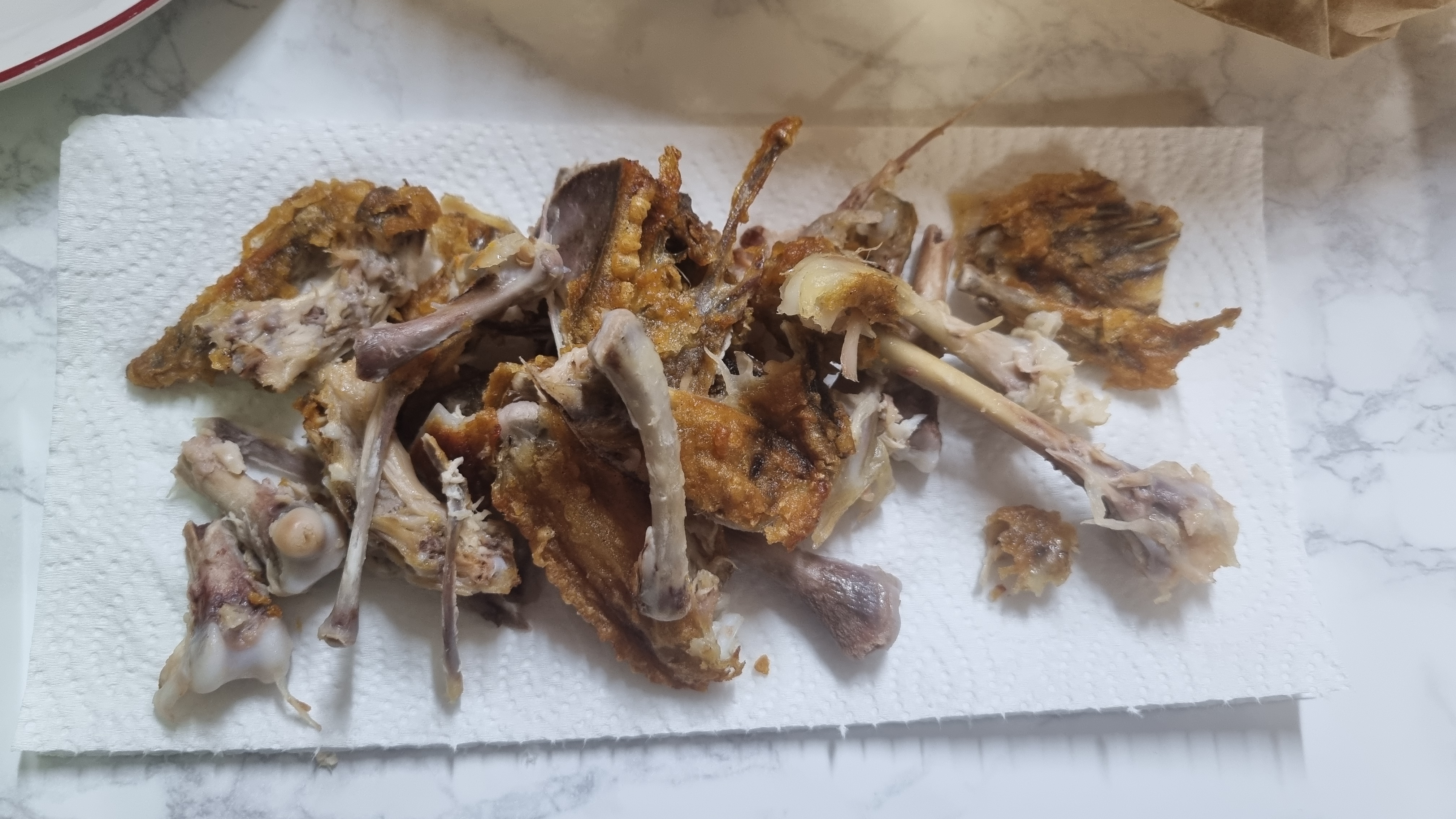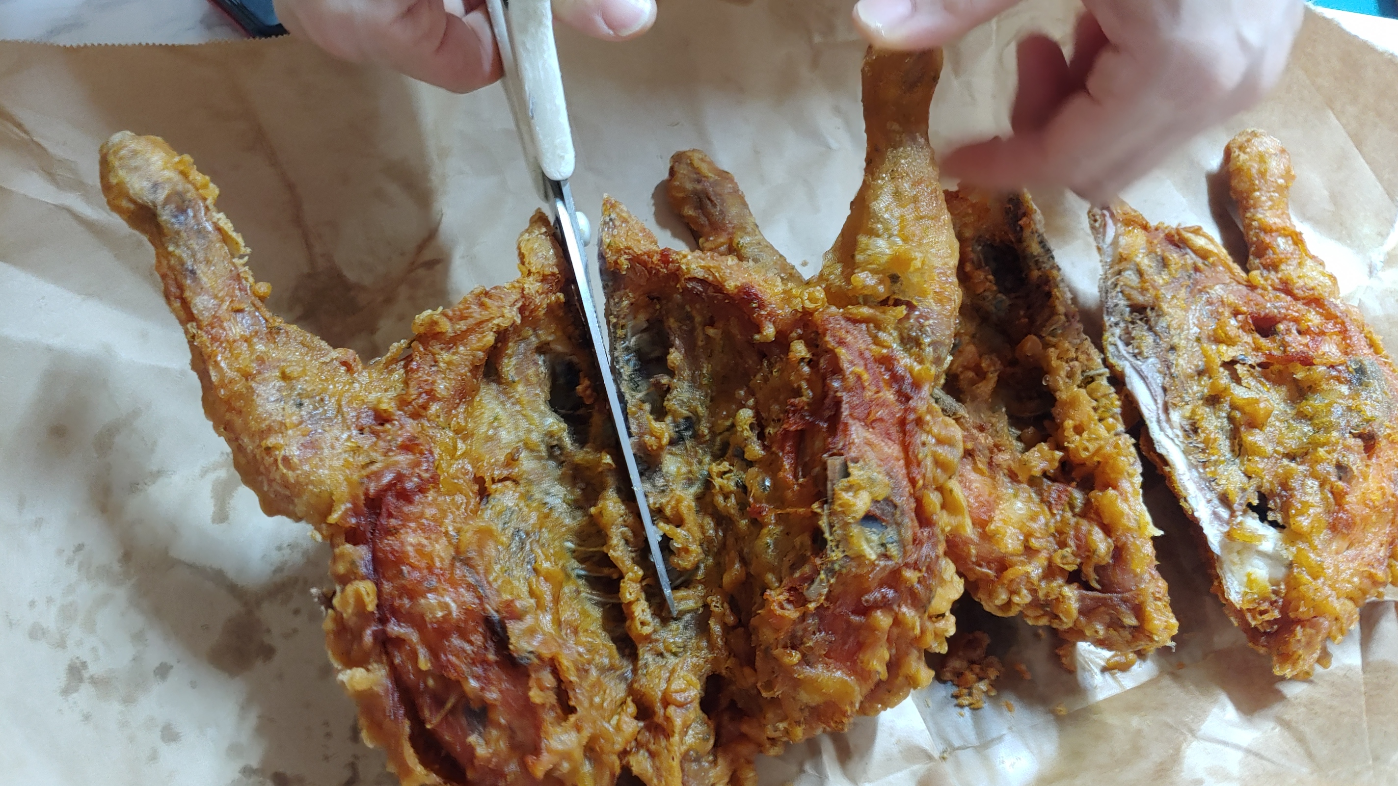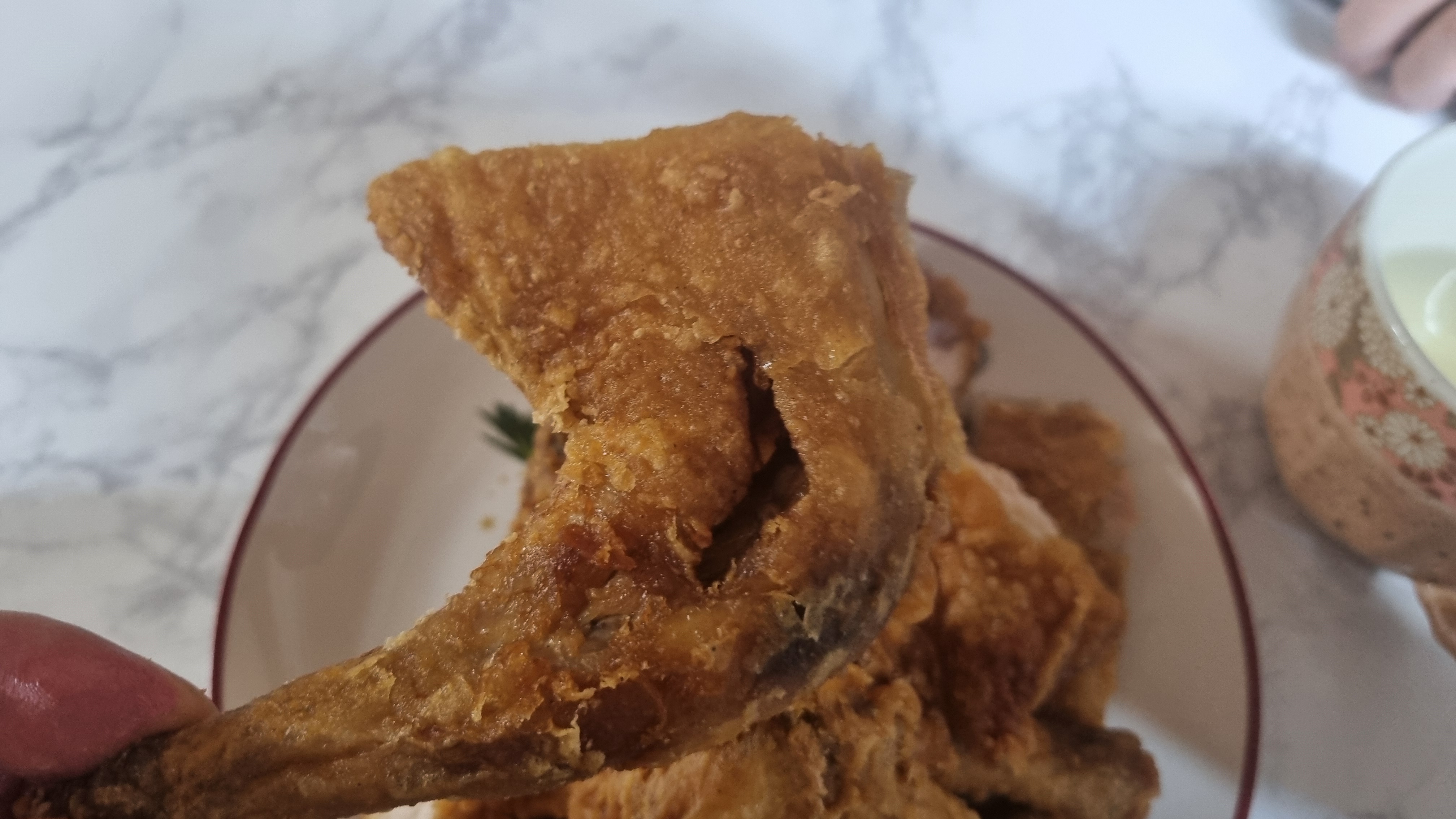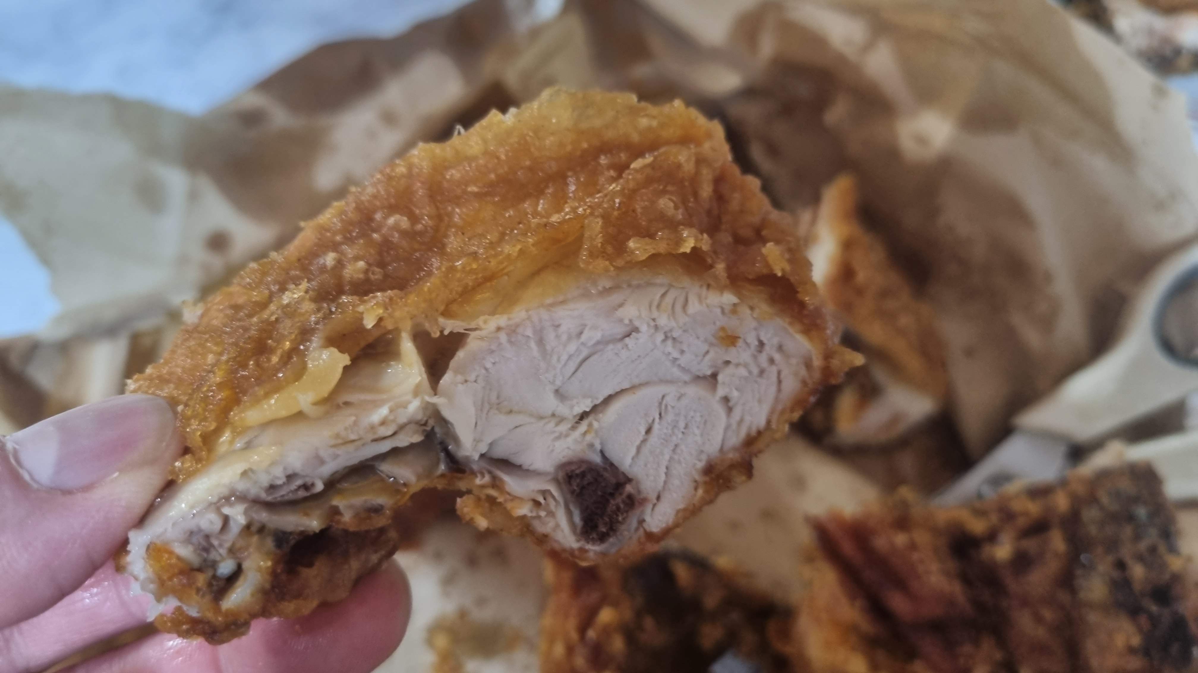 앞면과 뒤면의 모습인데 완전히 큰 닭은 아니지만 먹기에 적당한 크기이며 바삭 튀겨져 보기에도 상당히 맛있게 보이는 모습니다.