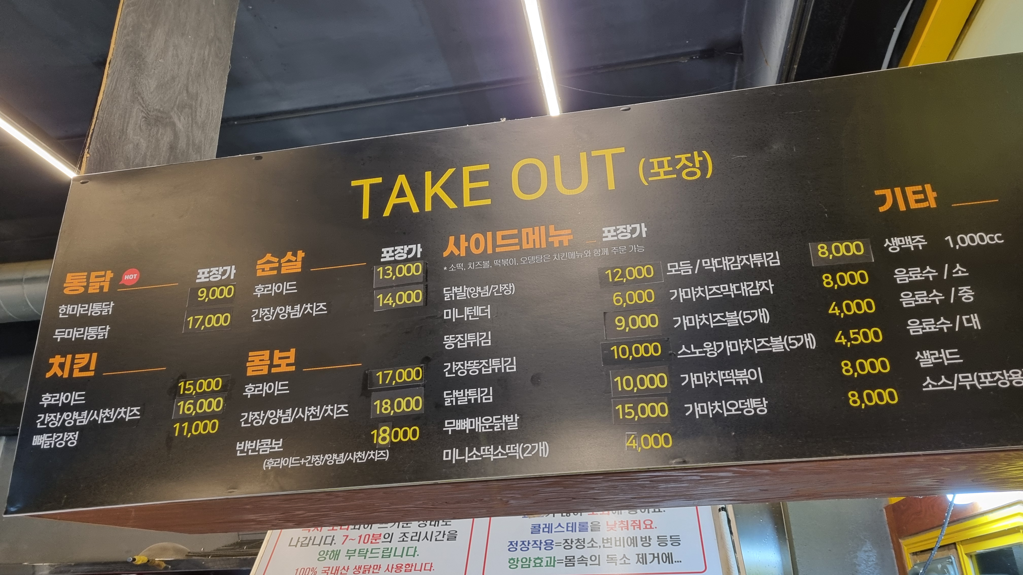 이곳은 순천 신대 가마치통닭인데 전국모두 가격은 대부분 동일합니다.