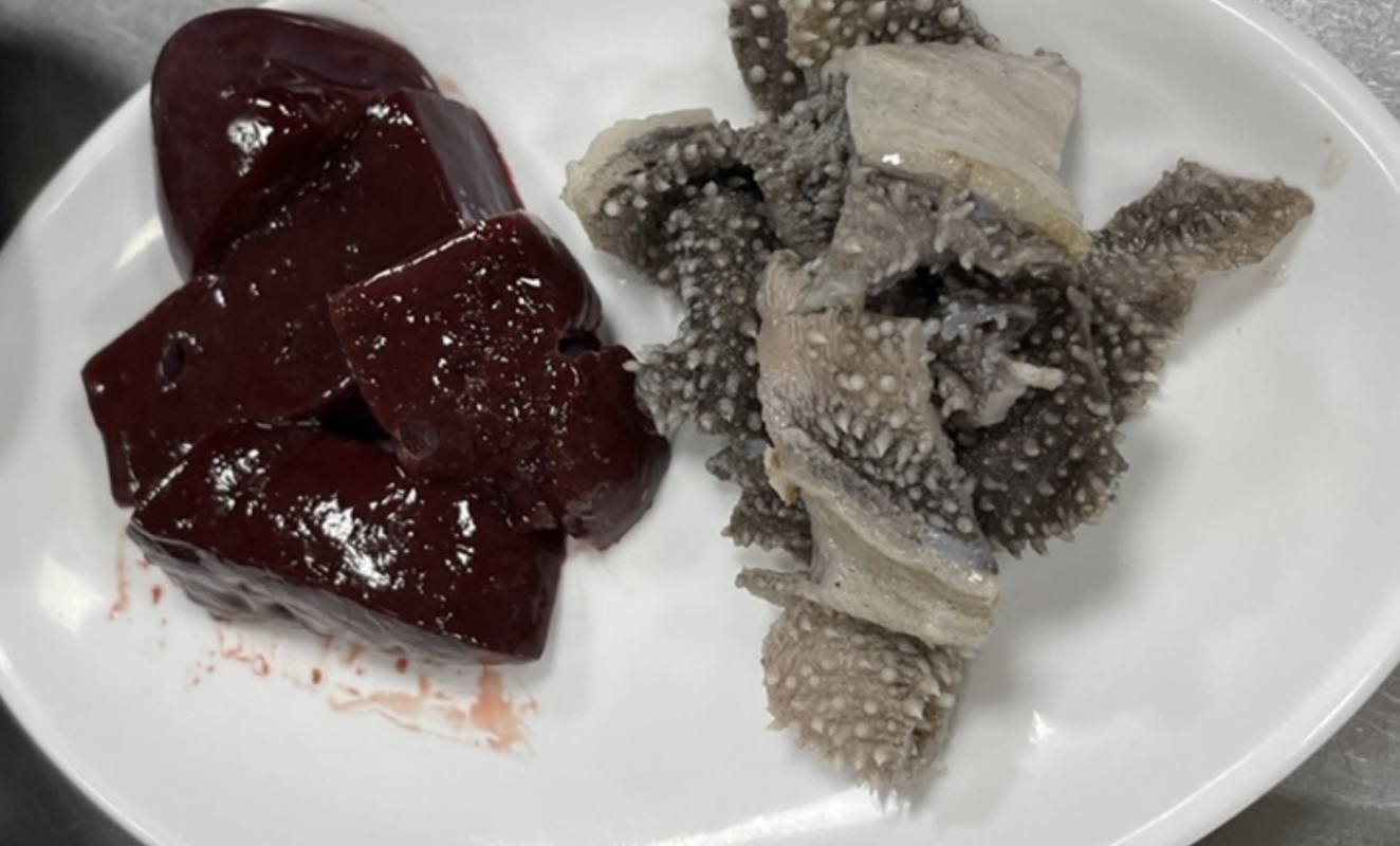 서비스로 나오는 천엽과 간입니다. 아주 싱싱하거라 바로 생식으로 드셔도 되며 필자는 천엽을 생식으로 바로 먹었는데 정말 맛있었습니다.