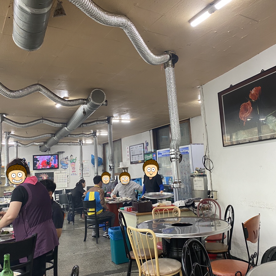 내부는 모두 옛날식 테이블인데 원탁에 중간에 숯불을 놓은 자리가 있습니다. 분위기는 곱창 드시기 딱 좋으며 손님들이 많아 자리가 만석인 경우가 많습니다.