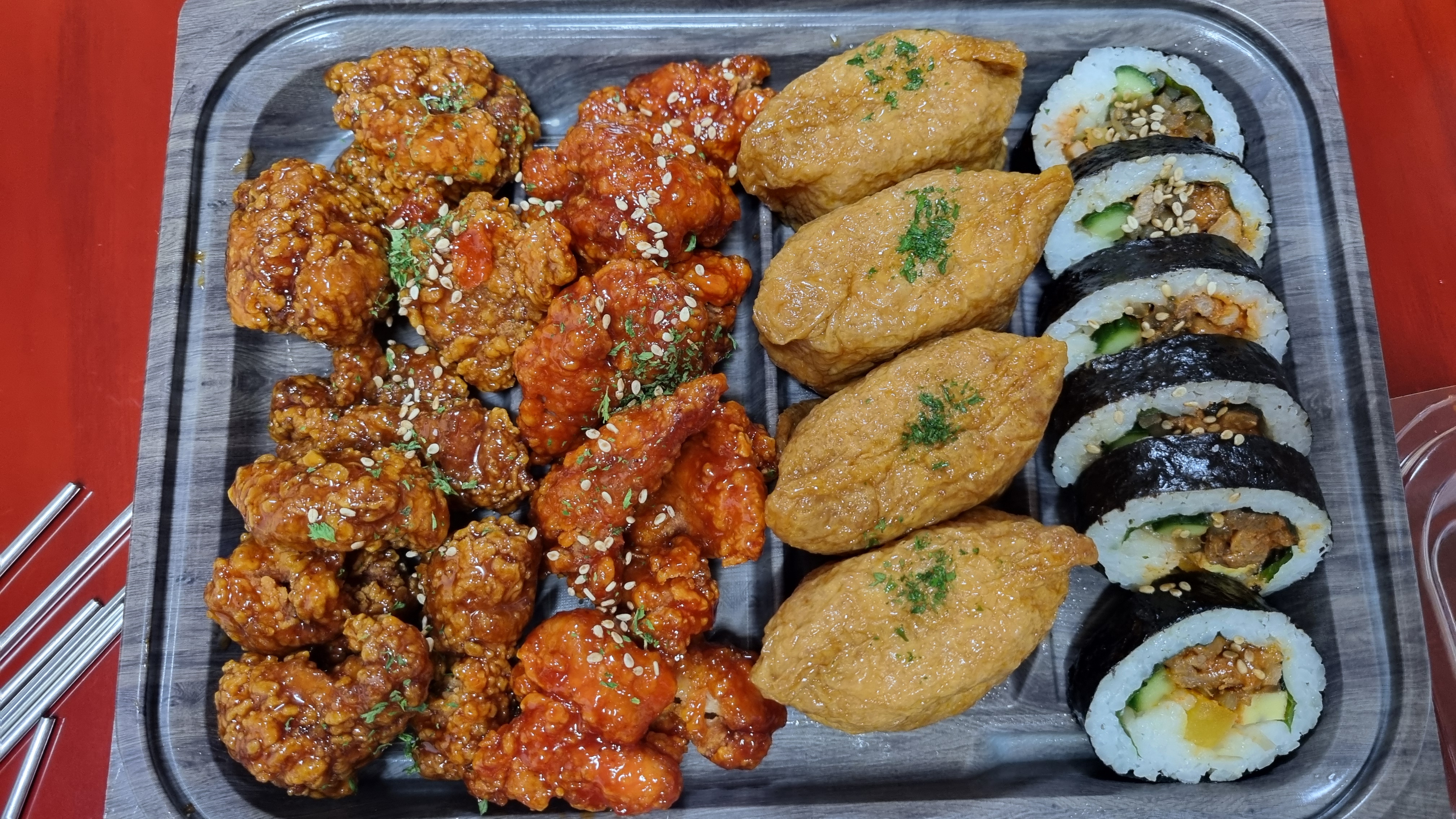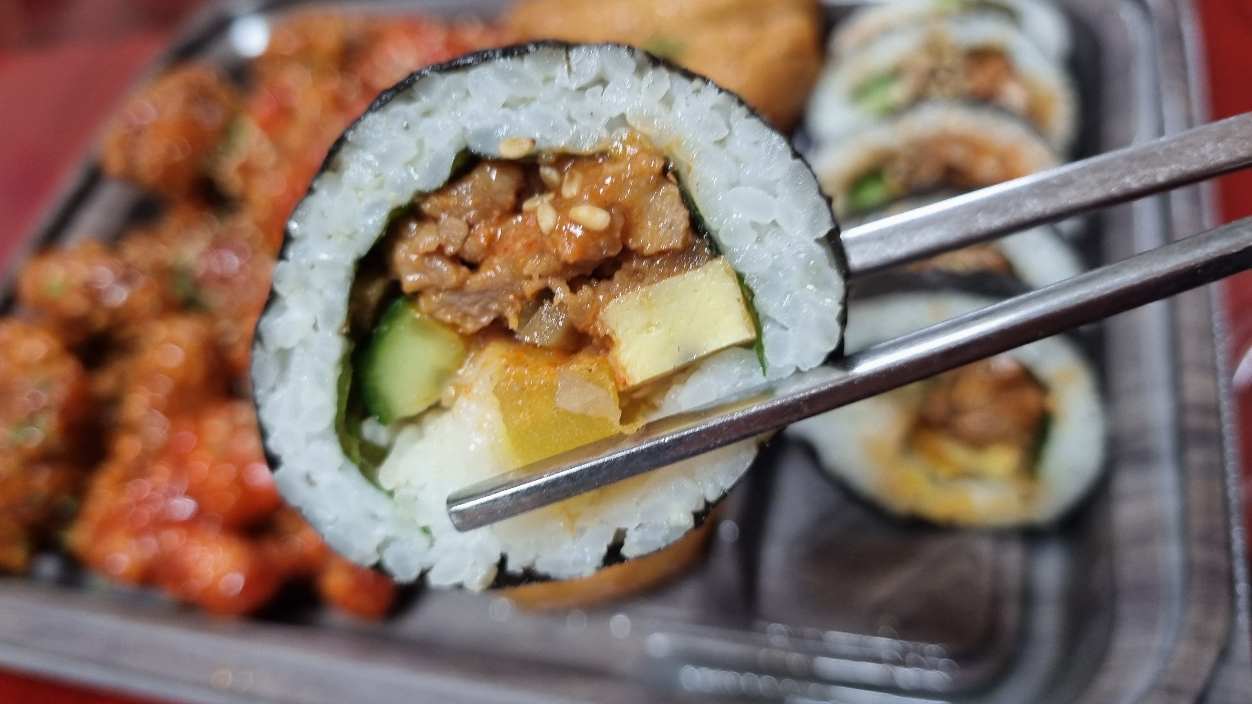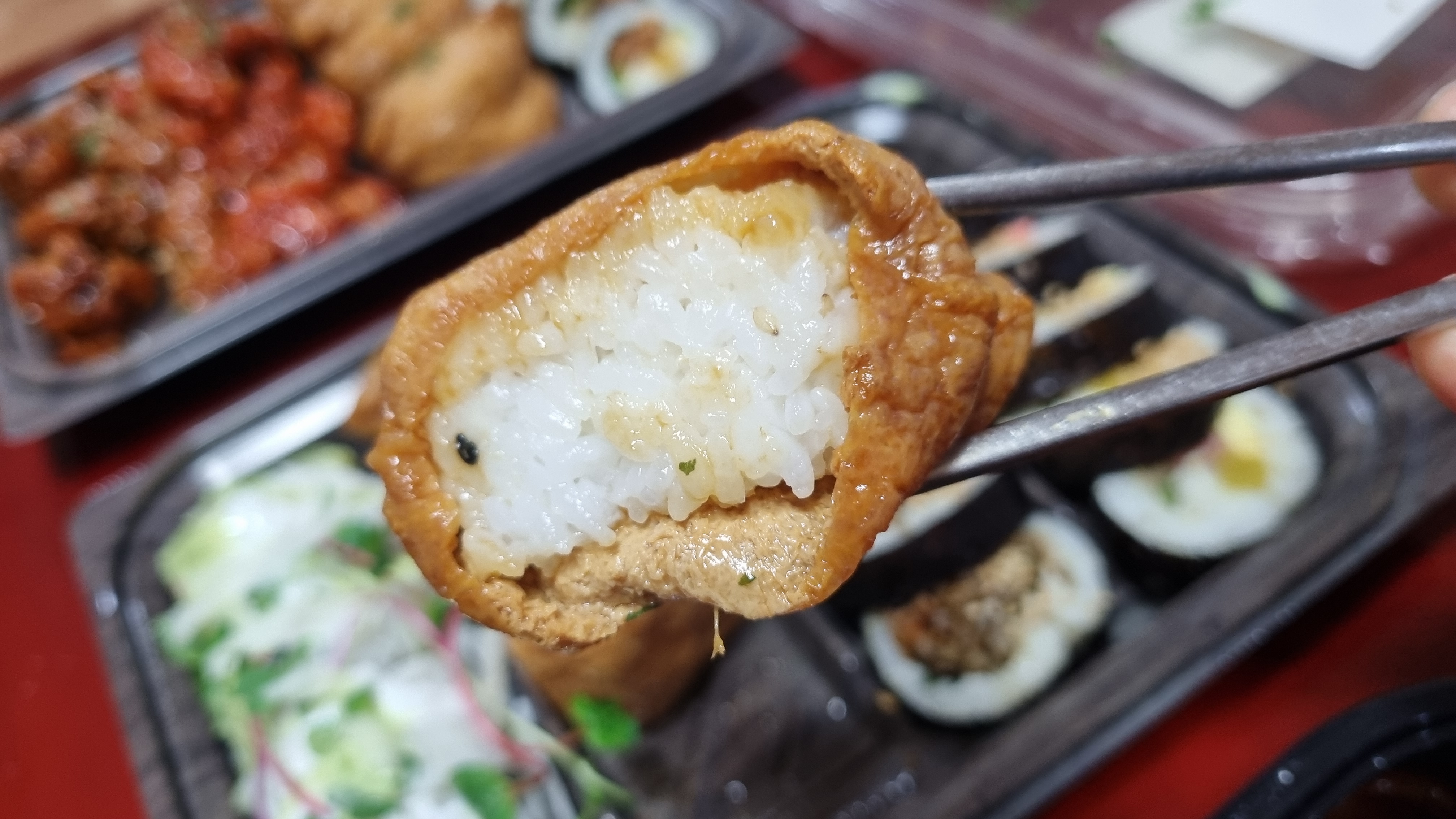 여러가지 김밥과 유부초밥을 먹고 싶을 때 아주 좋고 특히 간식보다는 식사대용으로 어주 좋습니다. 김밥도 여러 가지 재료가 들어가 완전히 전무점에서 판매하는 것과 동일한 맛으로 오히려 더 고급스럽게 보입니다.