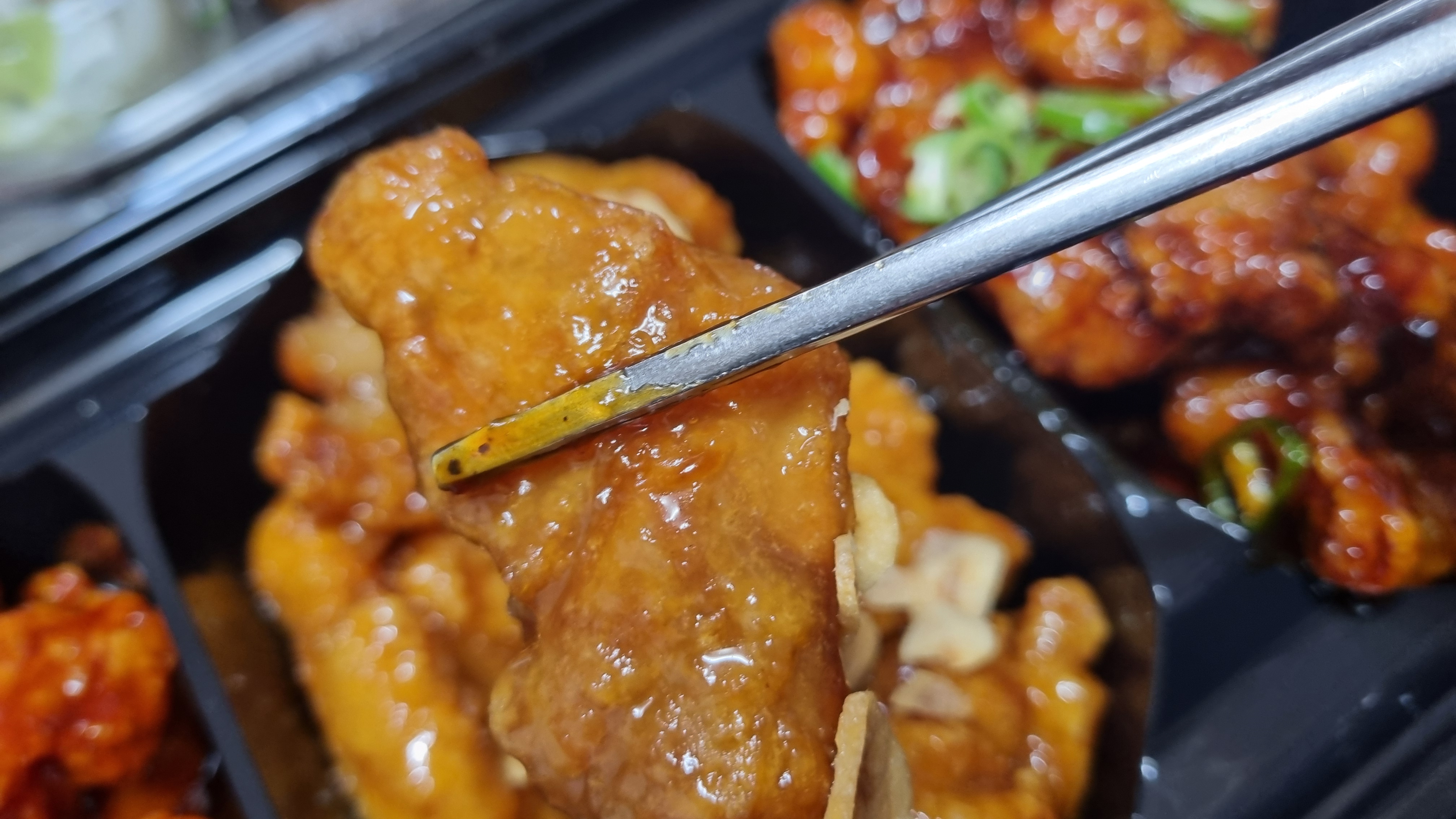 직접 먹어보았는데 순살로 되어 먹기에 부드럽고 무엇보다도 강정양념맛이 너무 좋고 살도 많아 입안에서의 식감이 아주 좋았습니다.