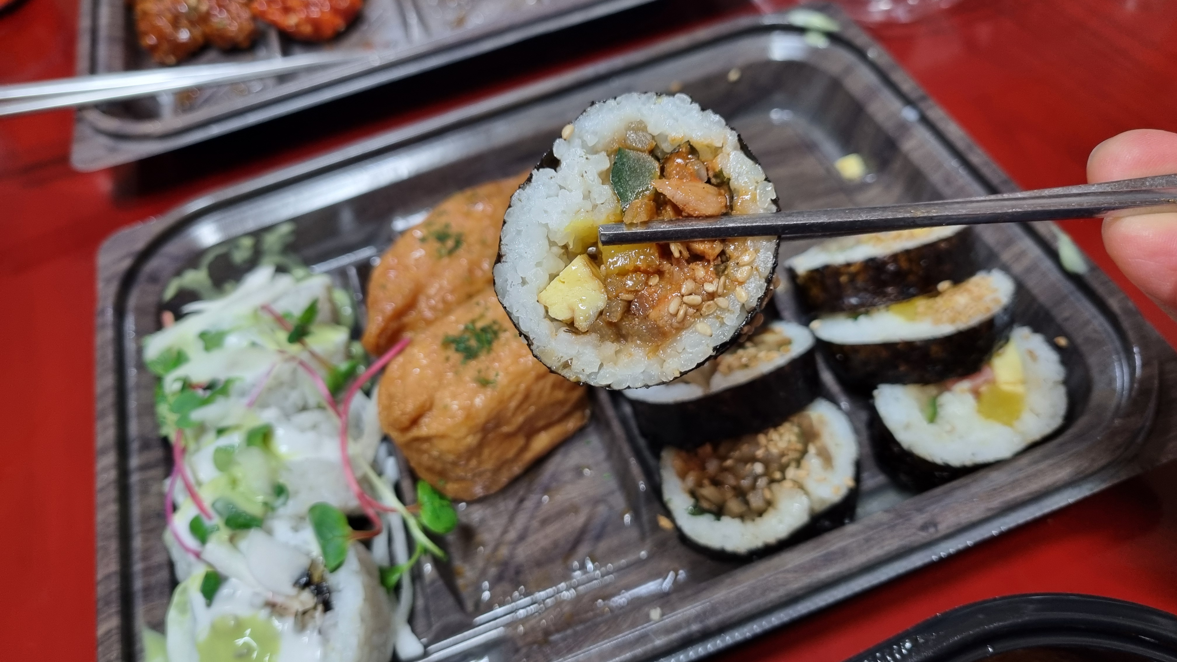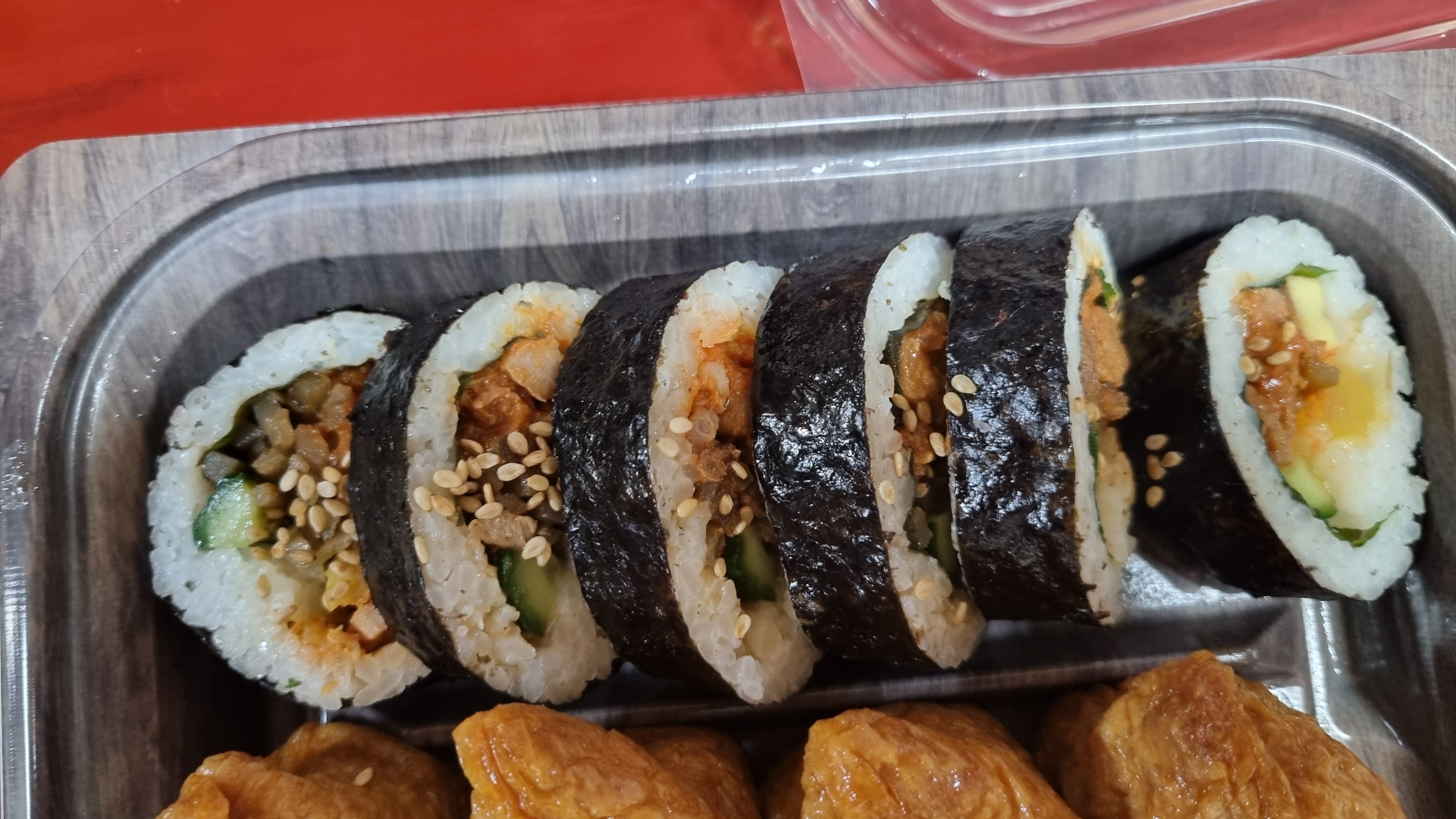여러가지 김밥과 유부초밥을 먹고 싶을 때 아주 좋고 특히 간식보다는 식사대용으로 어주 좋습니다. 김밥도 여러 가지 재료가 들어가 완전히 전무점에서 판매하는 것과 동일한 맛으로 오히려 더 고급스럽게 보입니다.