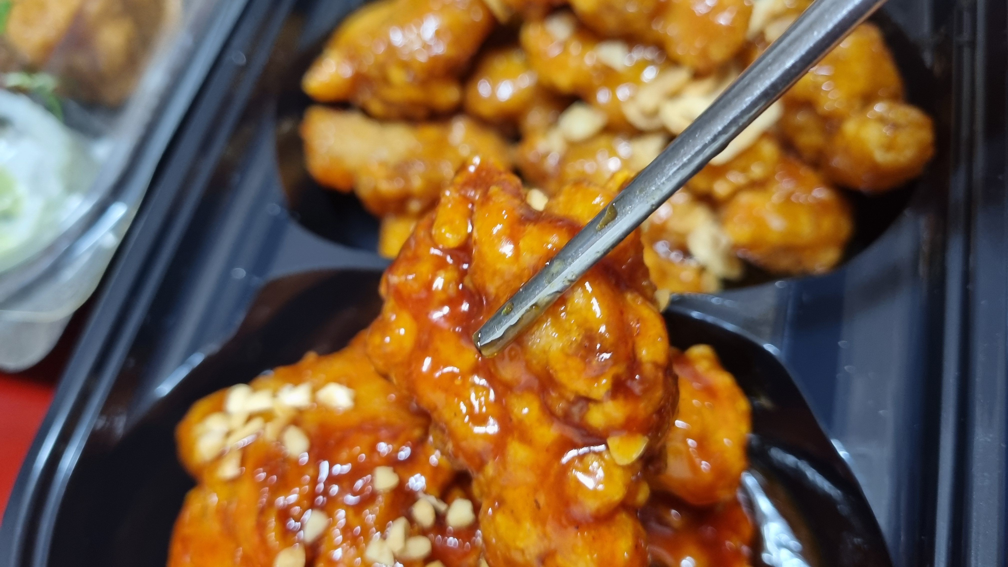 직접 먹어보았는데 순살로 되어 먹기에 부드럽고 무엇보다도 강정양념맛이 너무 좋고 살도 많아 입안에서의 식감이 아주 좋았습니다.