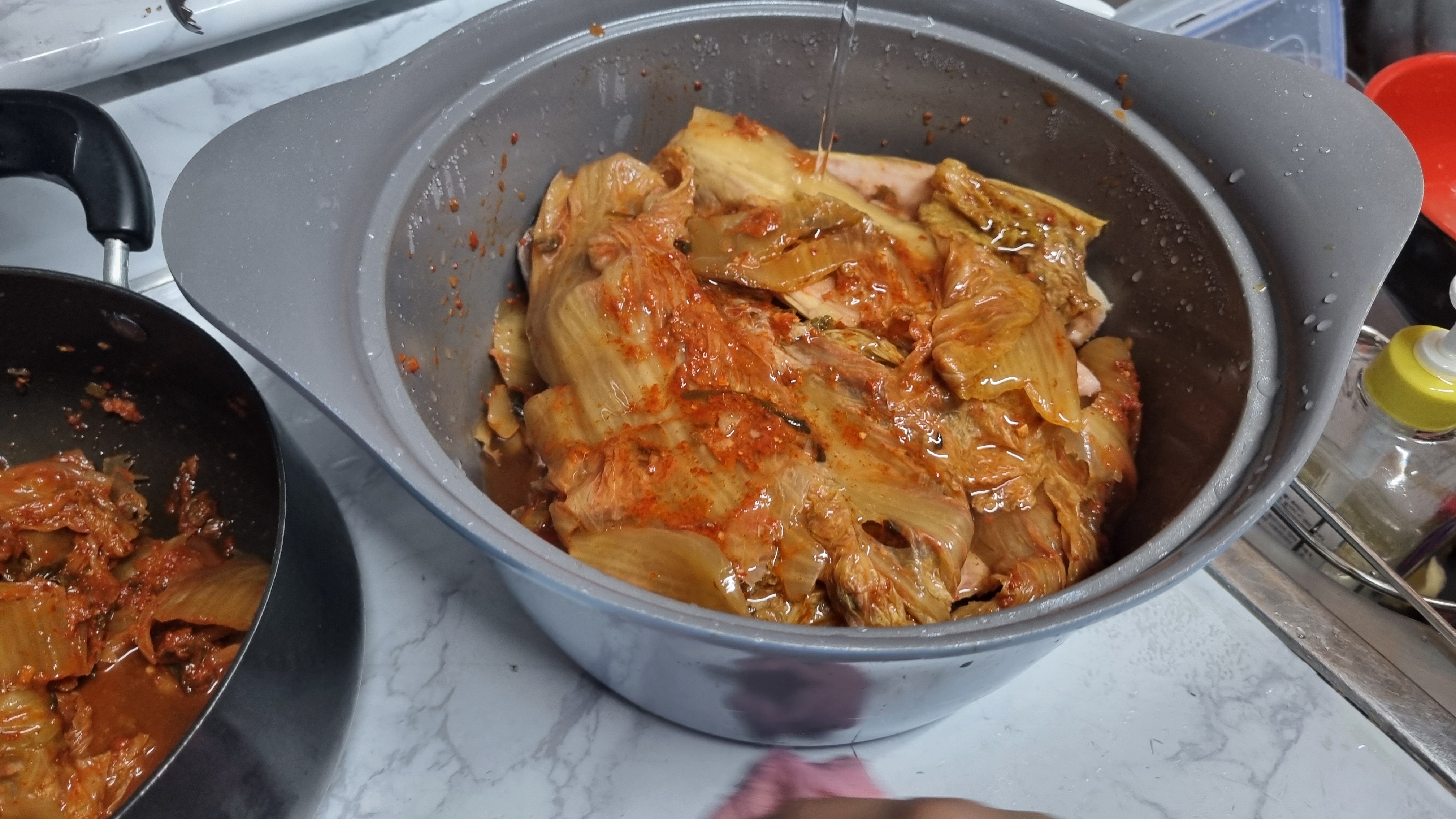 여기에 김치국물이 있으면 넣으신다면 더 맛있게 만들 수 있습니다. 마늘이나 기타 재료 양념을 전혀 추가하시 않았는데 본인들의 입맛이나 취향에 따라 원하는 것이 있으면 넣으셔도 좋습니다.