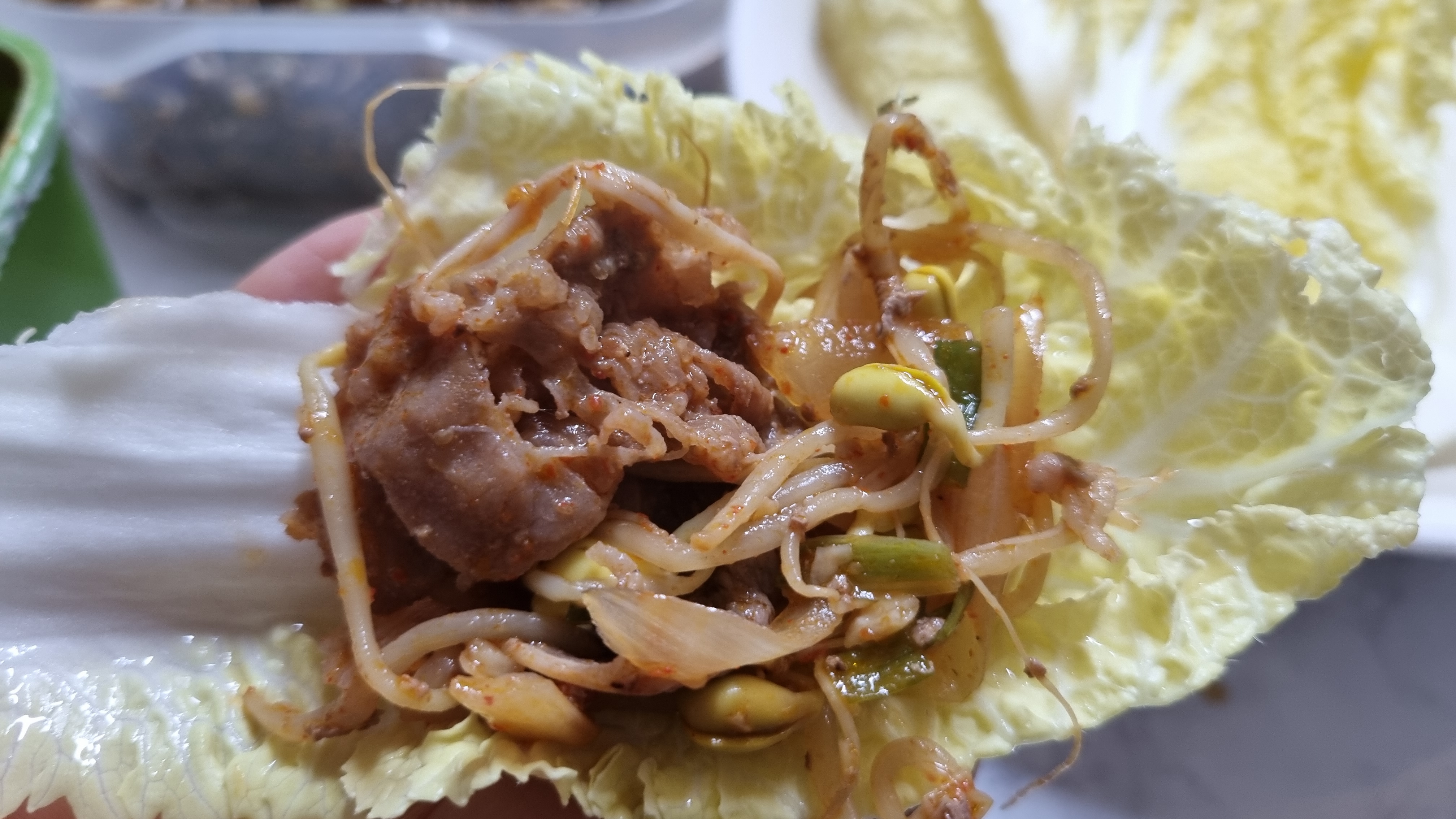 볶음고기만 먹어도 되고 밥과 함께 그대로 드셔도 되지만 상추나 배추쌈으로 드셔도 정말 맛있습니다.