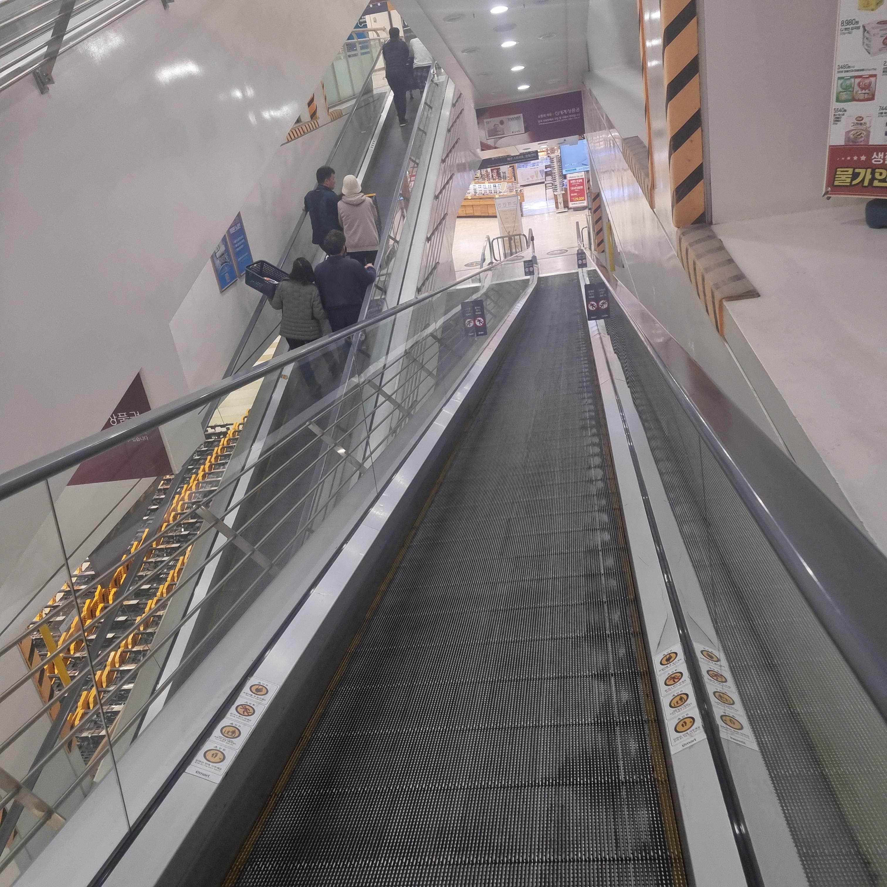 오랜만에 무빙워크를 타고 매장으로 내려가는데 대형마트에 가야 이것도 탈 수 있습니다. 최근에는 집앞의 중형마트나 식자재마트를 자주 가는 편인데 그래도 대형마트만의 매력이 있습니다.