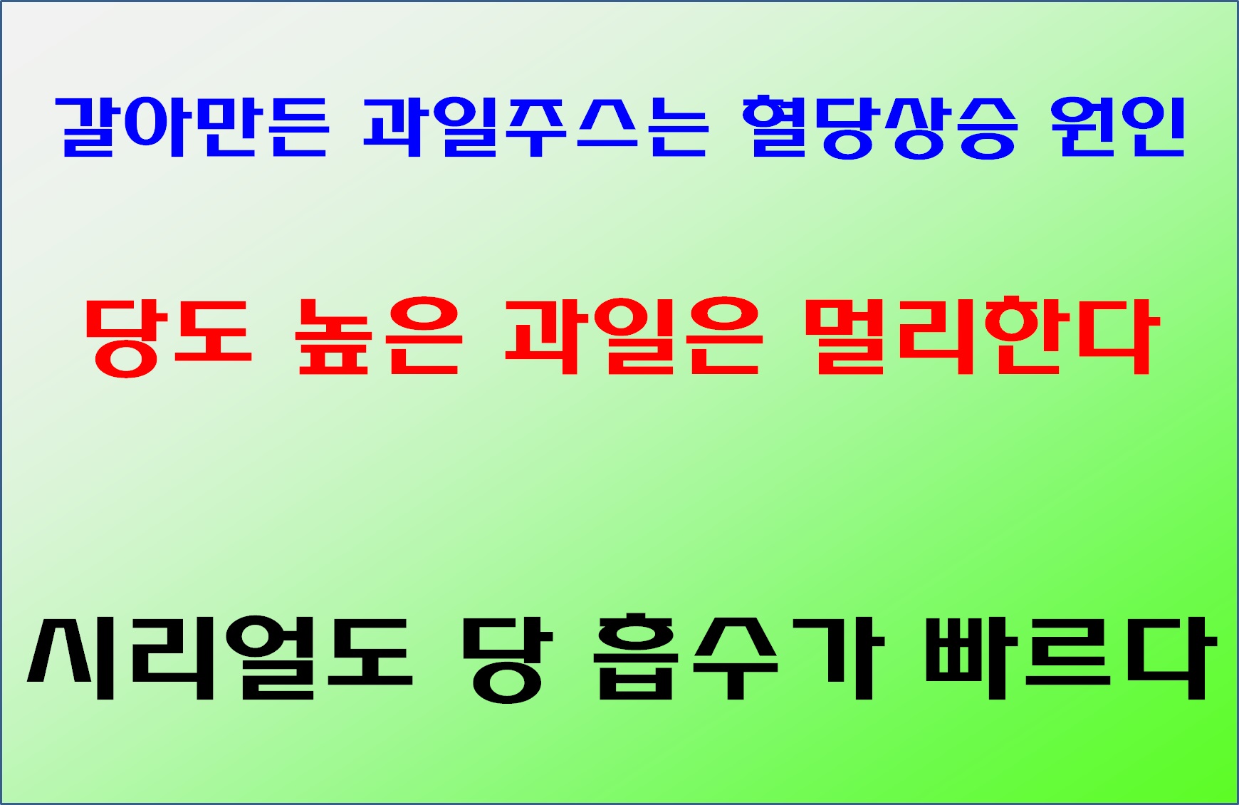과일주스가 좋지 않은 이유는 갈아서 드시기 때문에 문제가 되는데 믹서에 갈으면 과일 속의 섬유질도 끊어져서 생과일을 씹어서 먹을 때와는 비교도 안될 만큼 혈당을 빠르게 상승시킵니다.