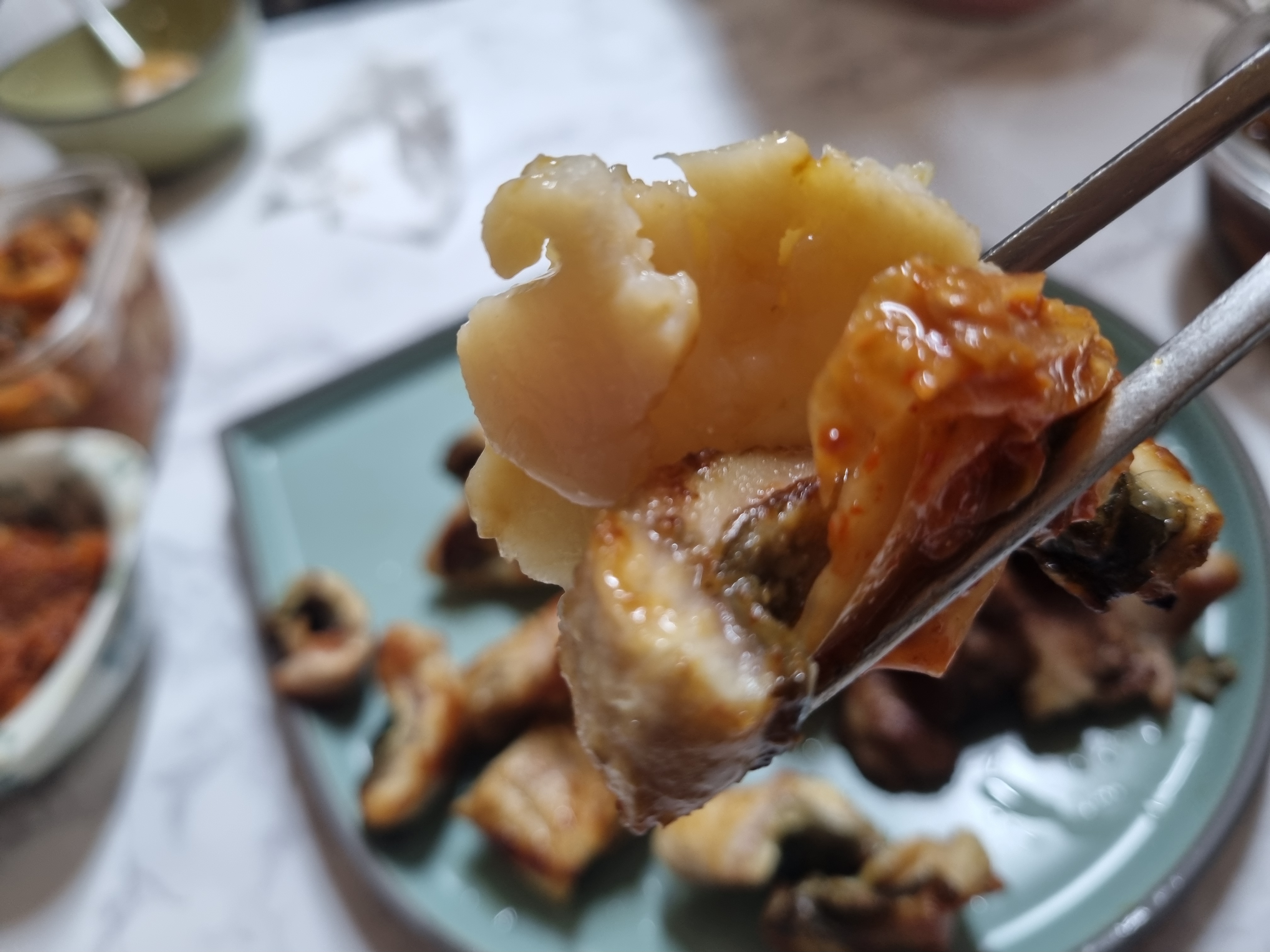 여기에 김치까지 추가하여 드시면 키조개관자 삼합이 되는 것입니다.
