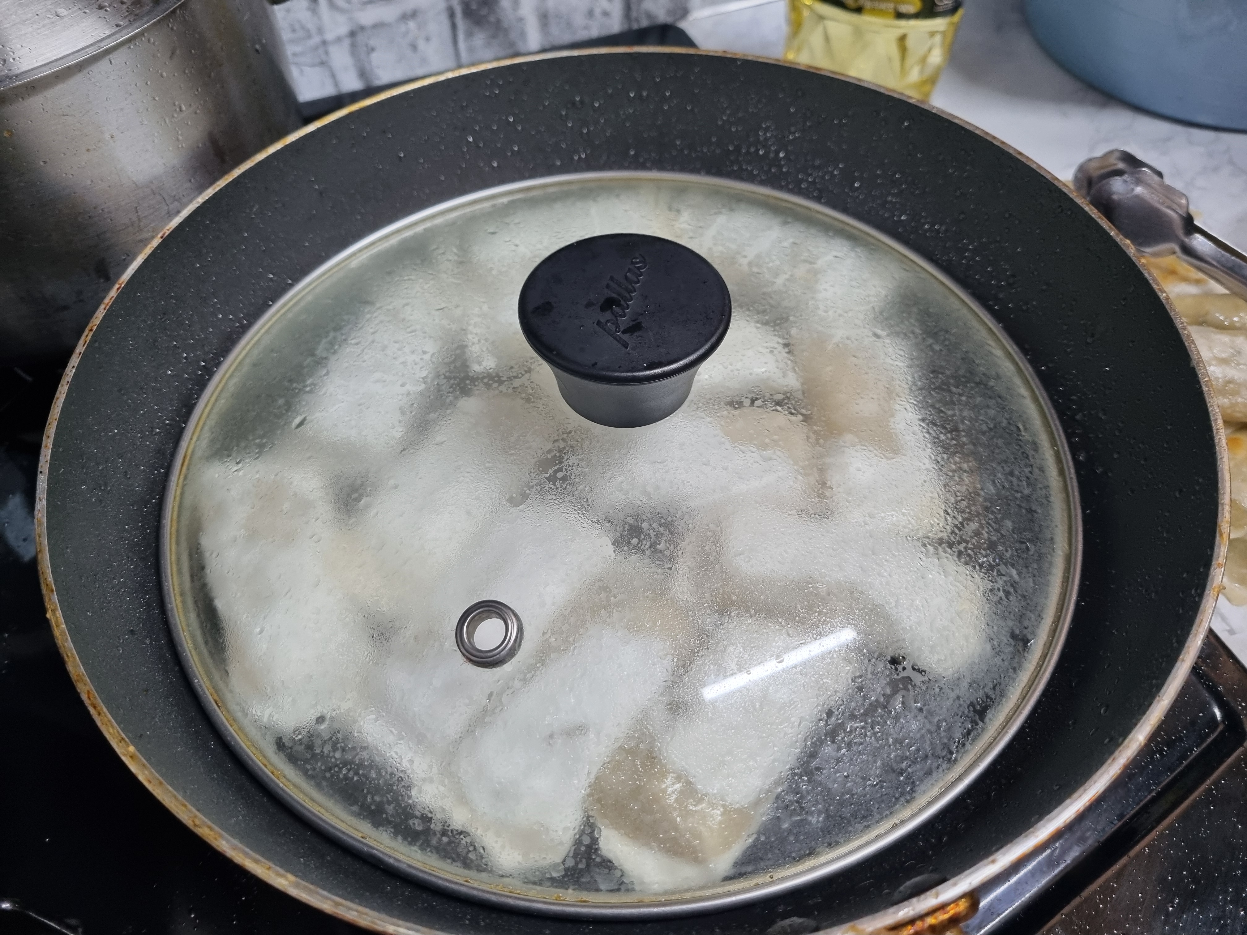 이때 뚜껑이 있으면 잠깐동안 덮어 놓고 구워줘도 좋습니다.