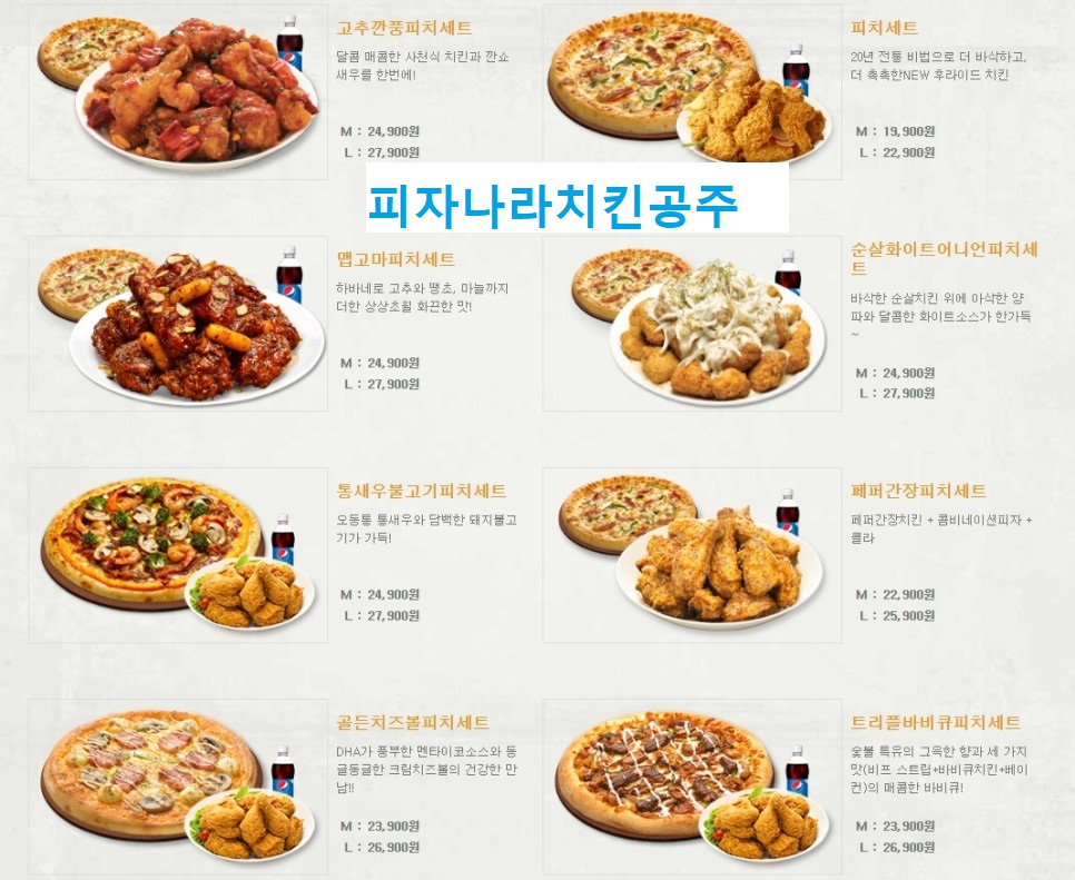 이곳은 피자와 치킨이 세트로 구성된 메뉴가 주로 있는데 가성비가 상당히 좋은 곳으로 유명하고 맛에서도 결코 떨어지지 않고 특유의 맛이 있는데 어떠한 메뉴들이 있고 왜 가성비가 좋은지 아래에서 하나하나 알아보겠습니다.