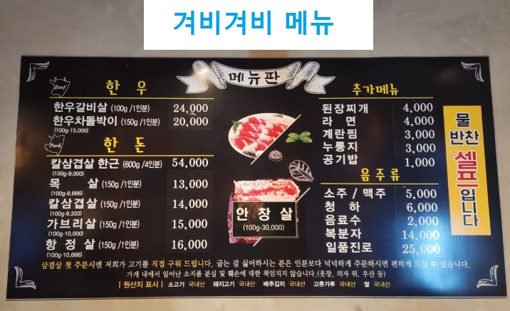 칼집 삼겹살 맛있는곳 순천 겨비겨비 신대점 메뉴 가격