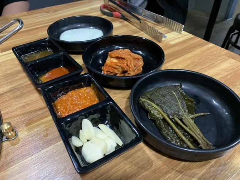 기본반찬은 배추김치에 깻잎 같은 것이 나오는데 정확한 이름은 모르겠습니다.