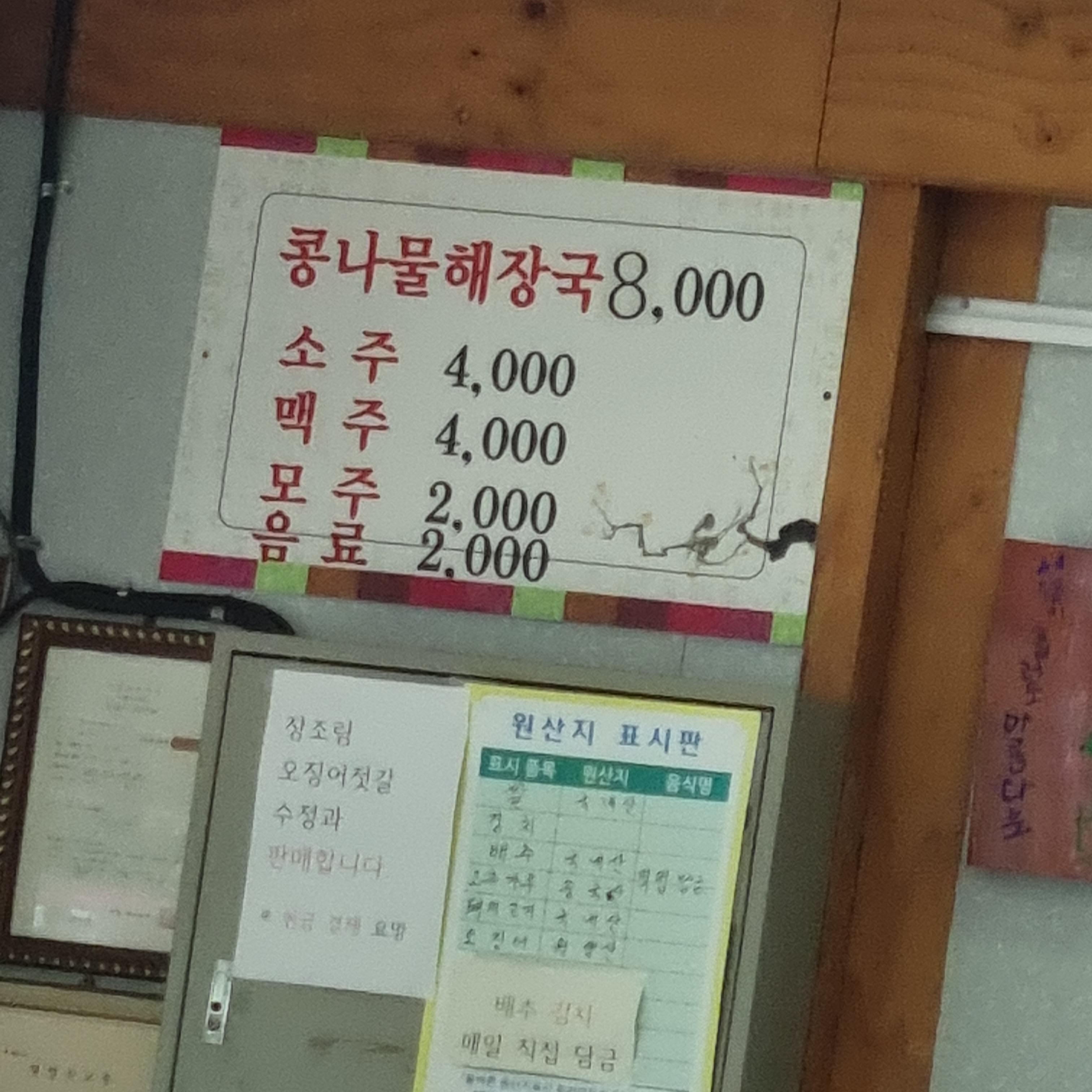 메뉴판인데 정말 메뉴가 콩나물국밥 딱 한가지 판매됩니다. 가겨은 8천원으로 적당한 가격에 한끼식사로 부담없는 가격입니다.