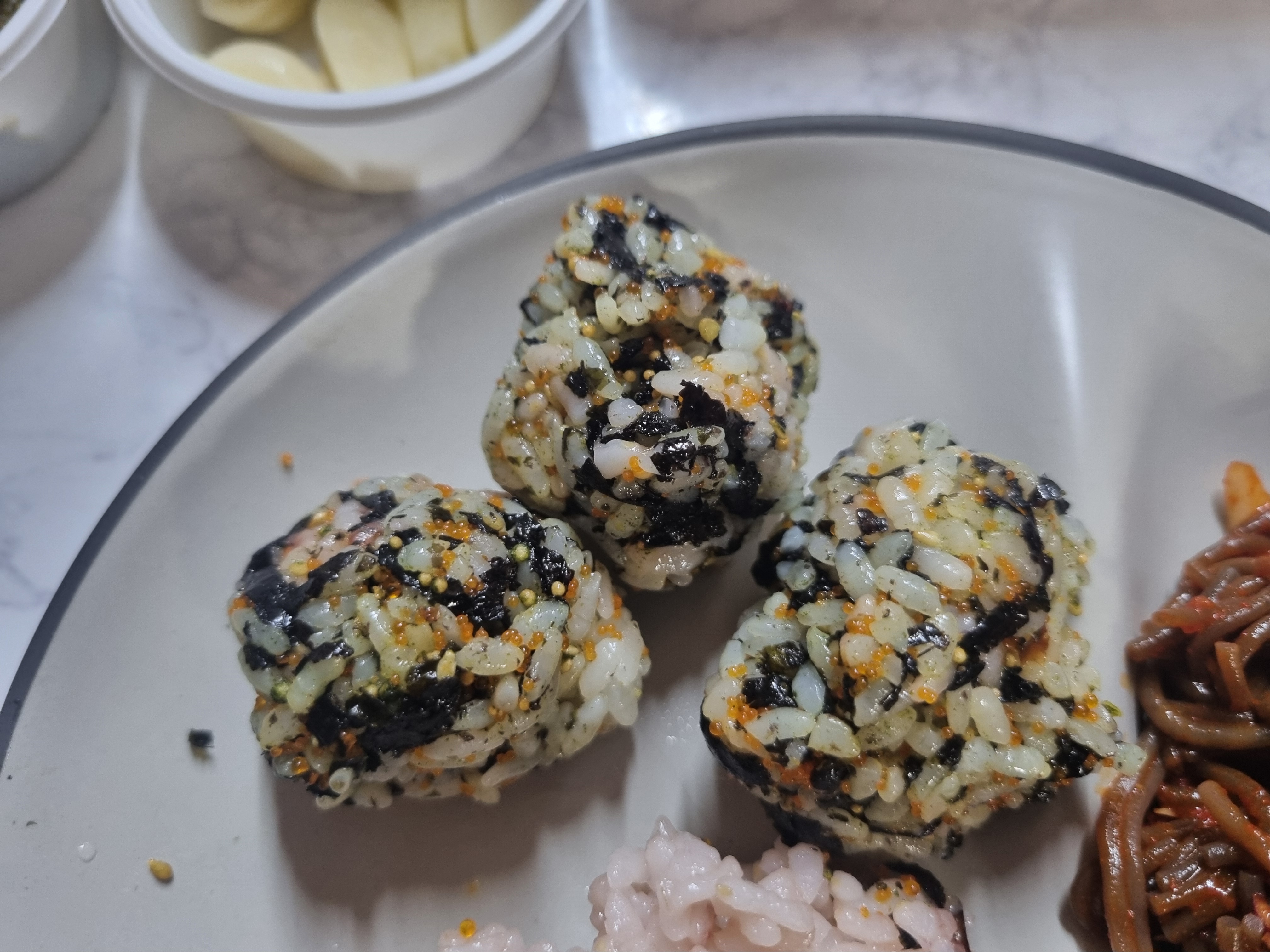 또한 밥과 양념이 따로와 이렇게 작은 주먹밥을 만들 수 있는 채로 가 오는데 배달된 밥과 양념을 잘 혼합하여 이렇게 주먹밥을 만들 수 있습니다.