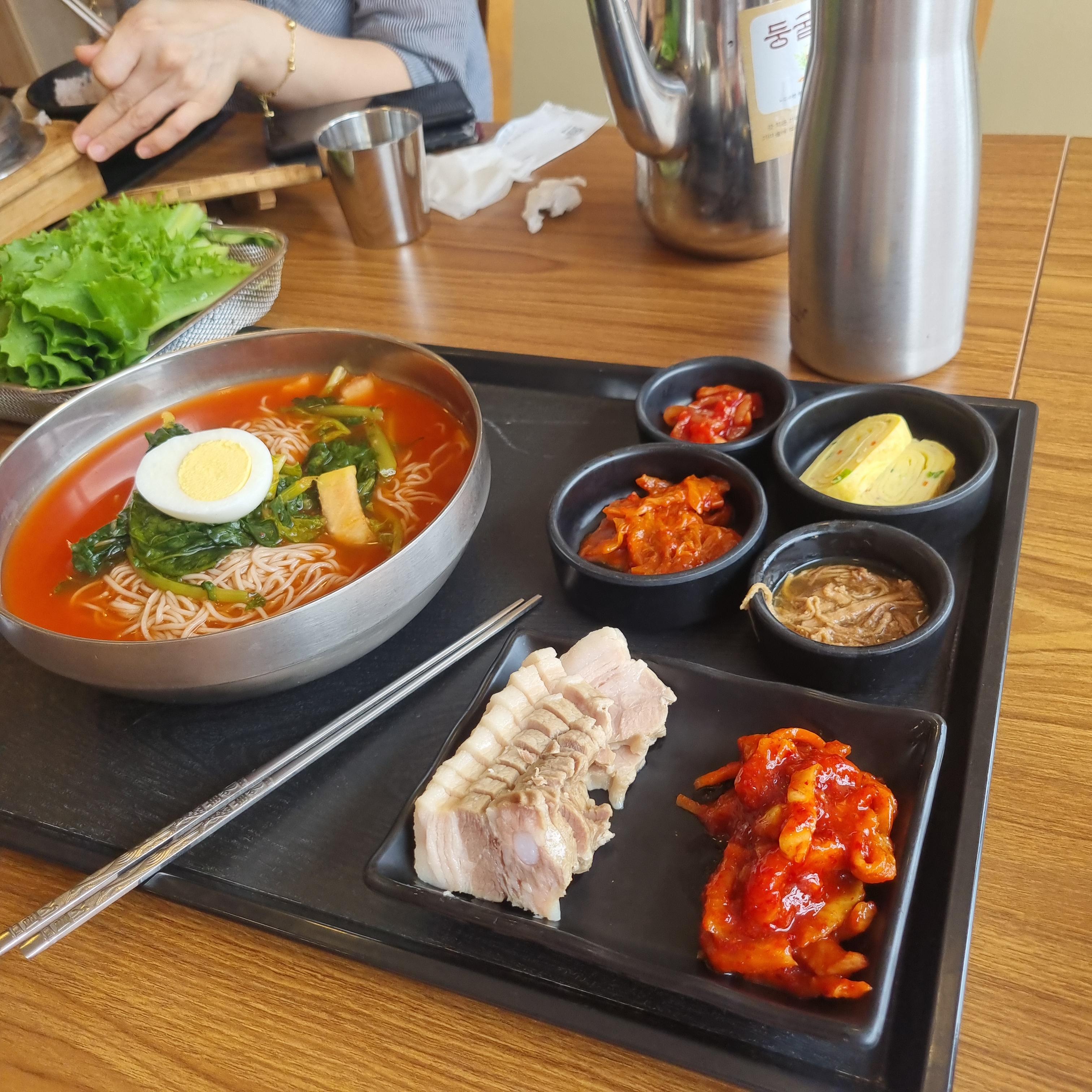 보쌈김치와 함께 나오는 보쌈도 식사하면서 가볍게 먹을 적당한 양이 나와 맛있게 드실 수 있는데 이렇게 고기와 국수를 조합하여 먹으니 더 맛있고 맛있게 먹었습니다.