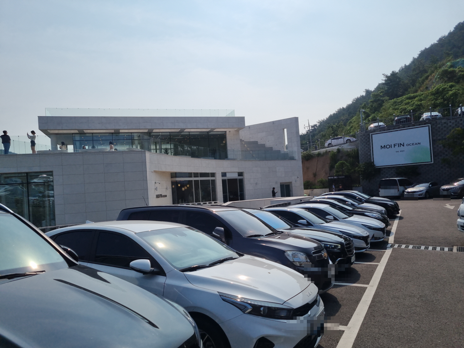 해안가 비탈진곳을 깍아 아주 커다란 카페를 만들었는데 그래서 주차장도 경사가 있지만 안정적으로 주차할 수 있으며 워낙 넓어 주차공간은 충분합니다.