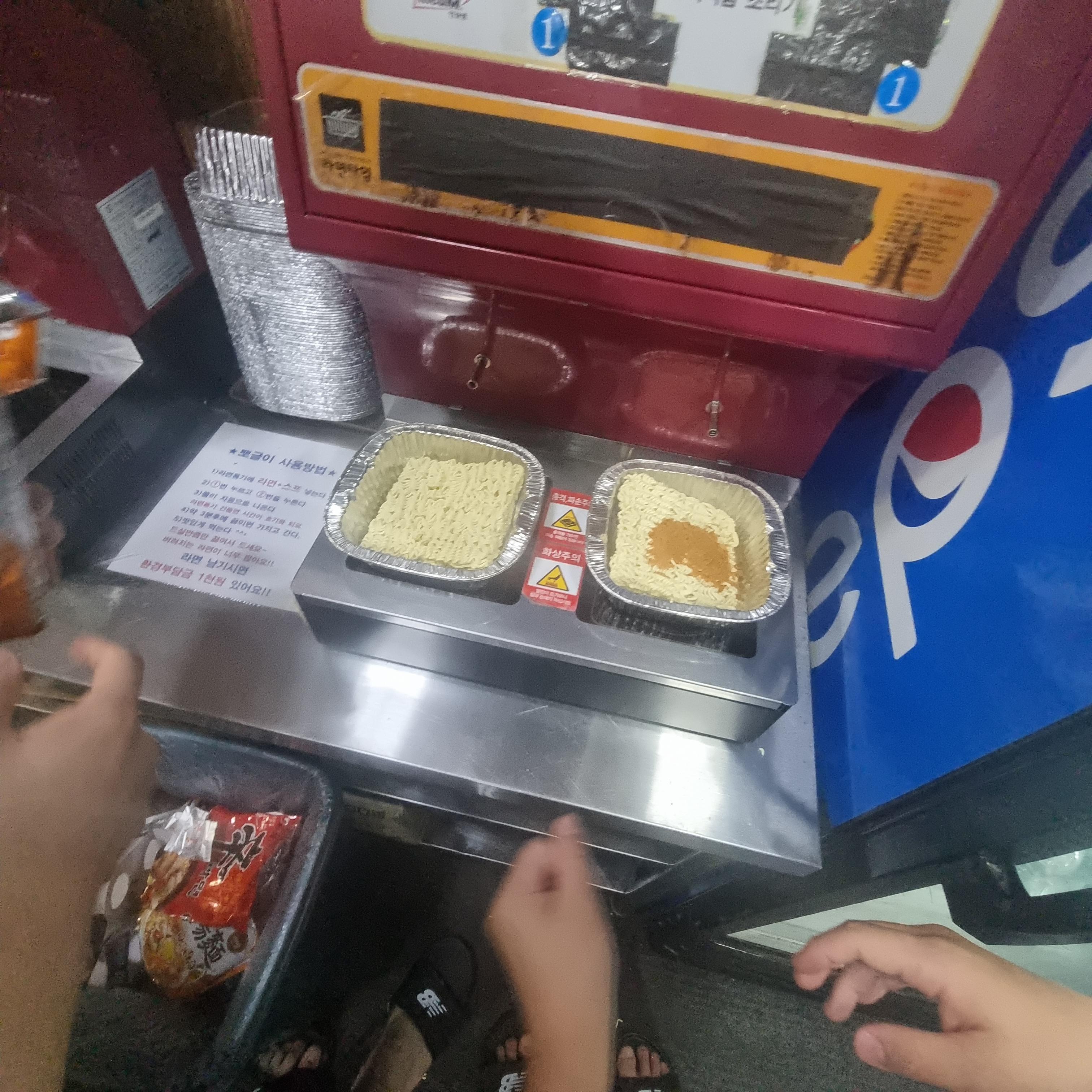 라면은 언제든지 무료로 마음껏 드실 수 있고 여러 종류의 라면이 준비되어 있어 자동 끓이는 기계에서 셀프로 마음껏 드실 수 있습니다.