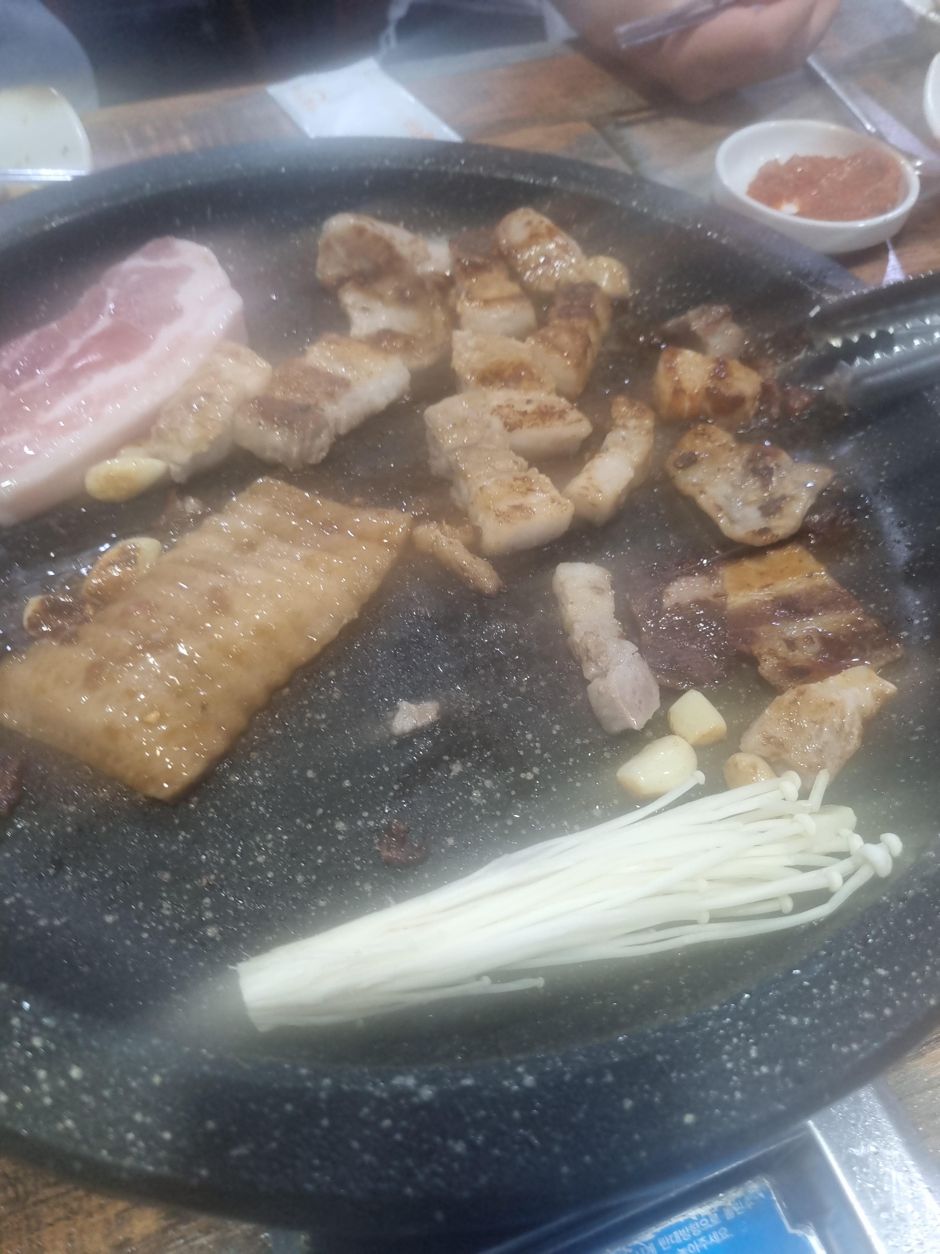 가격은 저렴한 곳이지만 팽이버섯, 파무침, 김치등 밑반찬과 양념에서 일반식당과 동일하고 고기맛도 솔직히 다른 전문점과 차이를 느끼지 못하고 먹었습니다.
