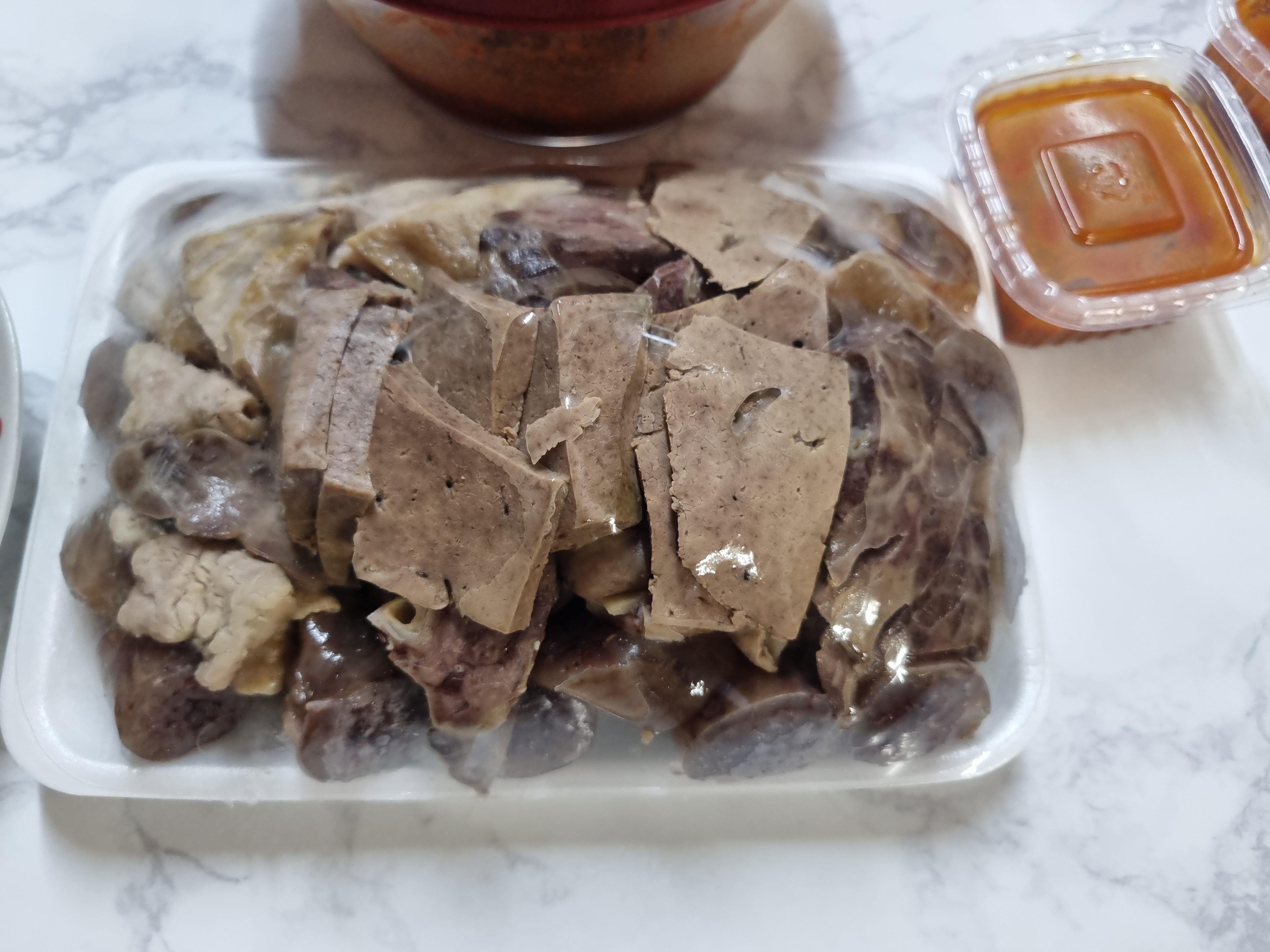 내장은 본인이 원할 시 썰어주는데 당연히 좋다 하였고 곱창, 허파, 간, 귀 부위등을 함께 주웠는데 정말 맛있게 보입니다.
