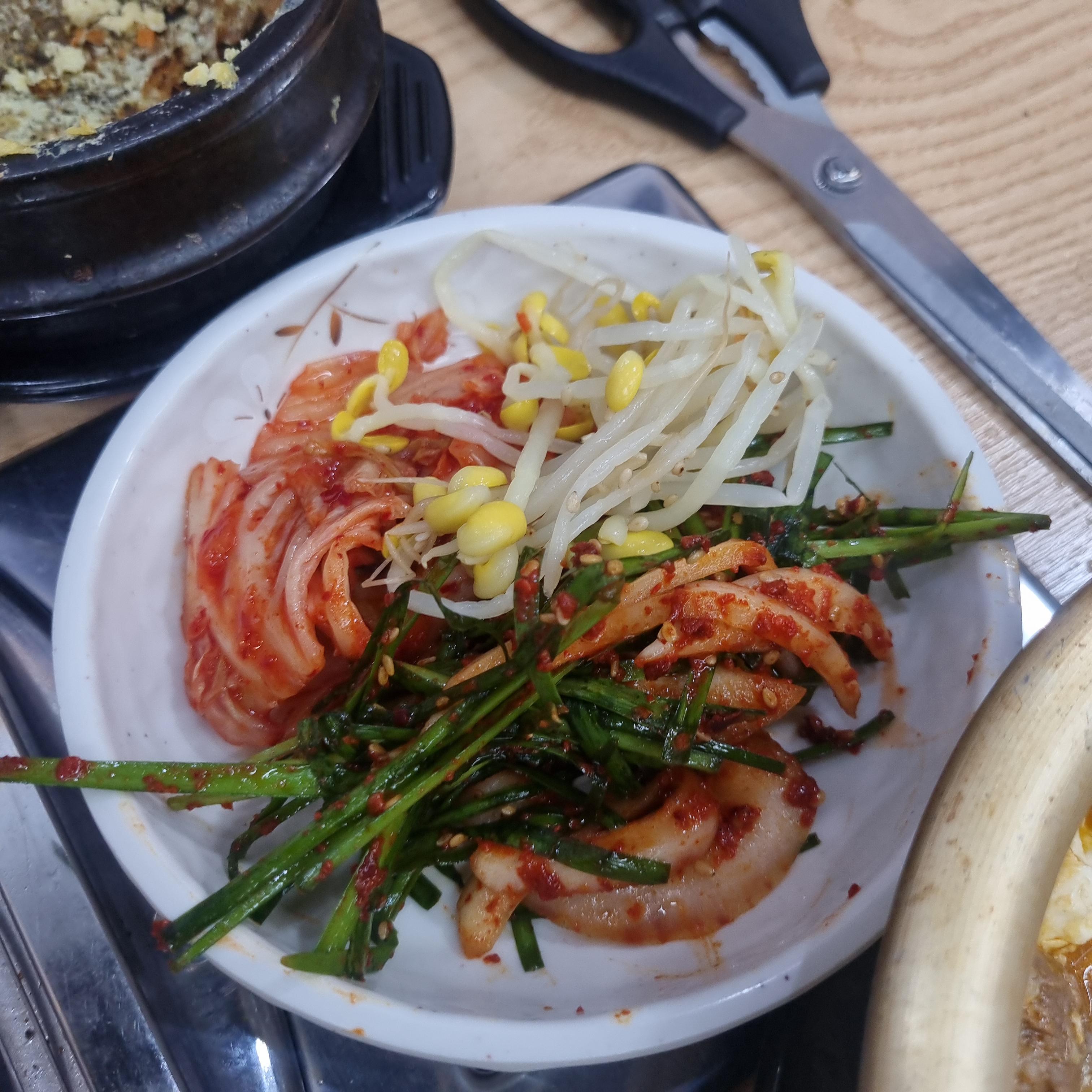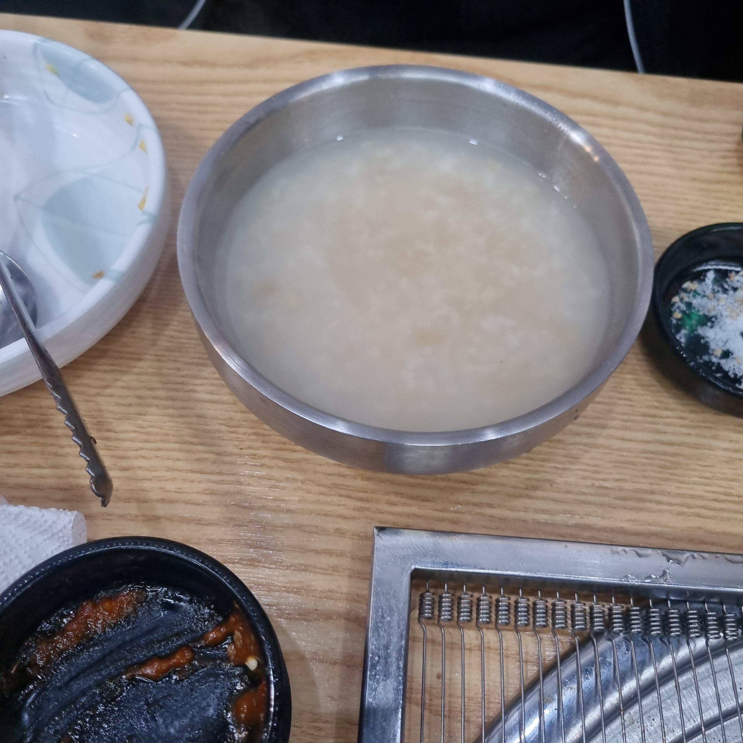 고기를 굽는 동안 반찬을 집어먹었고 또한 뚝배기에 된장국이 나오는데 정말 시원하고 맛있었습니다.